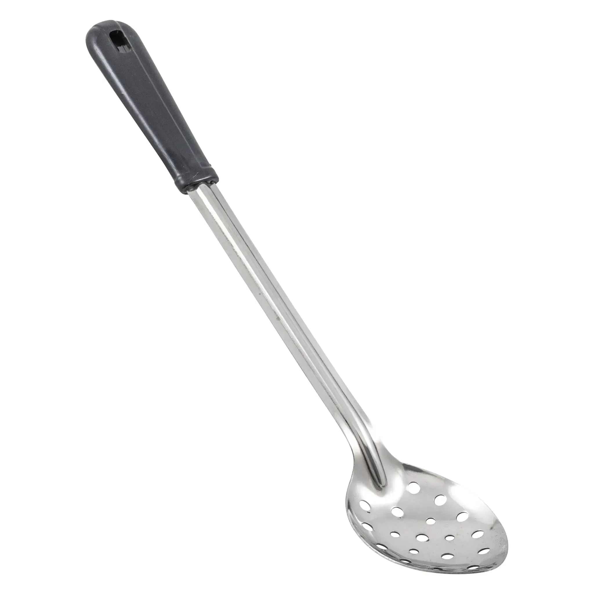 Upgrade your culinary instruments with the Adcraft - Admiral Craft Equipment BHS-15PE Serving Spoon. This perforated spoon is designed to enhance your efficiency in a commercial restaurant setting. With a length of 15 inches, it allows for easy maneuvering and precise serving. The one-piece construction ensures durability, while the heavy stainless steel material guarantees long-lasting performance. The Bakelite handle provides a comfortable grip, reducing fatigue during extended use. Hang the spoon conveniently using the built-in hanging hole, keeping your kitchen organized and within reach. Whether you're basting meats or straining vegetables, this spoon is the perfect tool for the job. Trust Adcraft - Admiral Craft Equipment for high-quality, reliable kitchen utensils that will elevate your culinary creations.