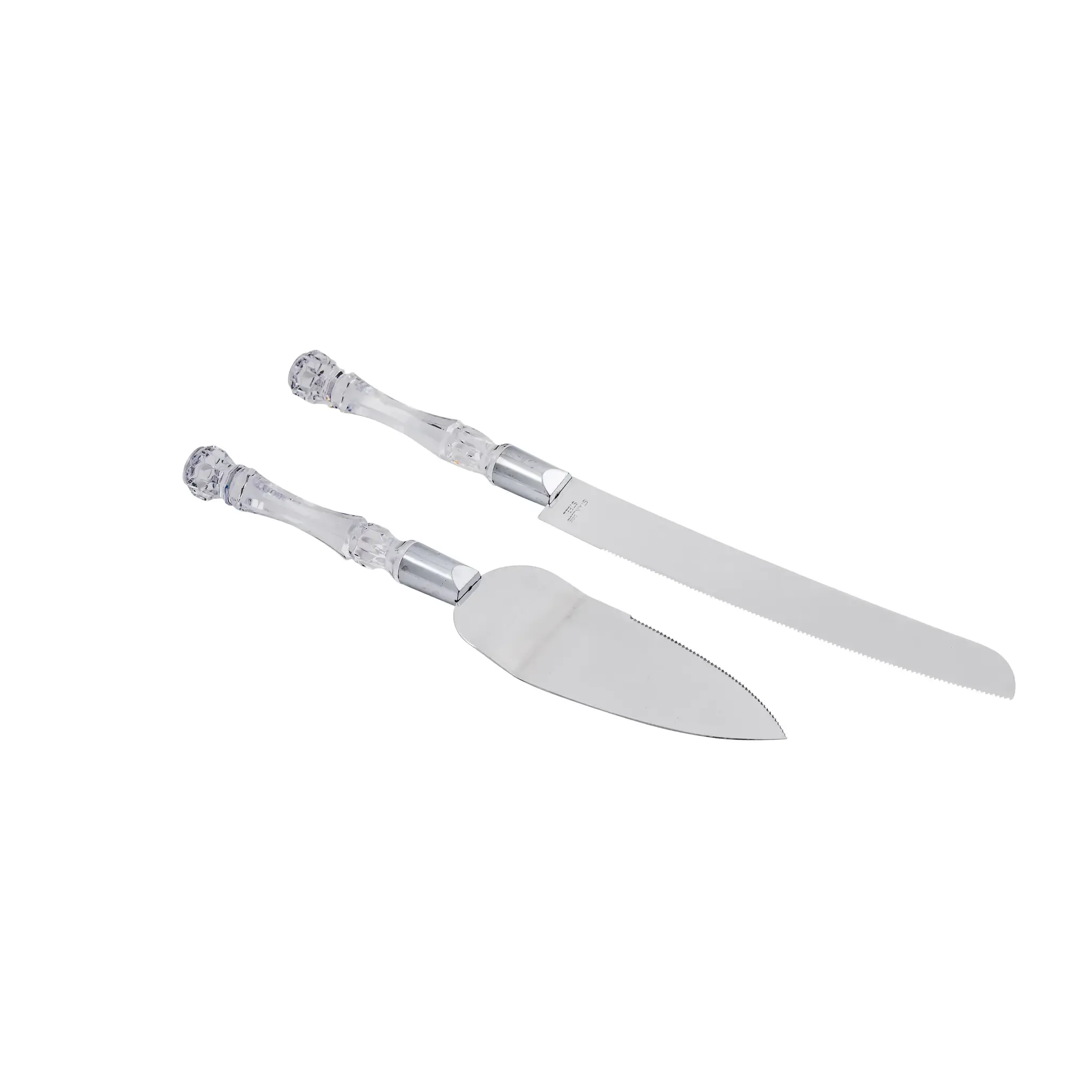 Where Innovation Meets Flavor: Introducing the Adcraft - Admiral Craft Equipment HS-2PC Pie / Cake Server. This essential tool is perfect for commercial restaurant use, ensuring precision and elegance when serving delectable desserts. The set includes an 11" long pastry server and a 13-1/4" long cake knife, both featuring serrated blades for effortless slicing. The acrylic crystal cut handles add a touch of sophistication, while the stainless steel construction guarantees durability and longevity. Packaged in a gift box with a see-thru compartment, this server set is not only practical but also makes for a stunning presentation. Elevate your dessert service with the Adcraft - Admiral Craft Equipment HS-2PC Pie / Cake Server and impress your customers with every slice.