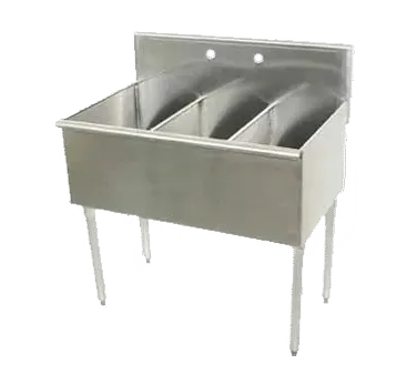 Mobilize your kitchen with the Advance Tabco, 6-3-54, Sink, (3) Three Compartment. This square corner scullery sink is designed to meet the demands of a busy commercial restaurant. With three 18"W x 21"D front to-back x 14" deep sink compartments, you'll have plenty of space to wash and rinse dishes, pots, and pans. The 8"H backsplash helps to keep your walls clean and protected from splashes and spills. The sink is made of durable 16 gauge 300 series stainless steel, ensuring long-lasting performance in a demanding kitchen environment. The galvanized legs with plastic bullet feet provide stability and support. Each sink compartment comes with a 1-1/2 IPS waste drain basket, making it easy to dispose of food scraps. With its generous size of 24-1/2" F/B x 54" L/R overall, this sink is perfect for any commercial kitchen. Upgrade your kitchen with the Advance Tabco, 6-3-54, Sink, (3) Three Compartment.