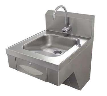 Create culinary magic with the Advance Tabco, 7-PS-41 Hand Sink. This wall-mounted sink is designed to meet the needs of a busy commercial restaurant. The tapered bowl design allows for easy cleaning and efficient water drainage. Made from 18 gauge 304 stainless steel, this sink is durable and resistant to corrosion, ensuring long-lasting performance. The electronic faucet, available in both battery and 110v options, provides hands-free operation for improved hygiene. The deck-mounted soap dispenser and undermounted front-loading paper towel dispenser offer convenience and efficiency. The stainless steel skirt with a removable access panel and enclosed bottom adds a sleek and professional look to any kitchen. With its NSF and cCSAus certifications, this hand sink meets the highest standards of sanitation and safety. Upgrade your restaurant's hygiene and efficiency with the Advance Tabco, 7-PS-41 Hand Sink.