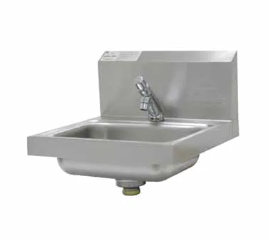 Enhance the heart of your restaurant with the Advance Tabco, 7-PS-72 Hand Sink. This wall-mounted sink is designed to meet H.A.C.C.P. standards, ensuring a safe and sanitary environment for food preparation. The 14" wide x 10" front-to-back x 5" deep bowl provides ample space for handwashing, while the 20 gauge 304 stainless steel construction ensures durability and longevity. The slow self-closing metering faucet with a mixing valve allows for precise control of water temperature, while the basket drain prevents clogs and keeps the sink clean. This hand sink is perfect for busy commercial restaurant kitchens, where hygiene is of utmost importance. With its high-quality materials and thoughtful design, the Advance Tabco, 7-PS-72 Hand Sink is a reliable and essential addition to any professional kitchen.