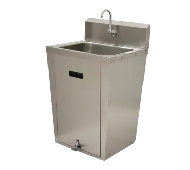 Unleash culinary creativity with the Advance Tabco, 7-PS-86 Hand Sink. This pedestal-mounted sink is designed to meet the rigorous demands of a commercial restaurant kitchen. Made from durable 18 gauge 304 stainless steel, it is built to withstand heavy use and maintain its sleek appearance. The 20" wide x 16" front-to-back x 8" deep basin provides ample space for handwashing, while the splash-mounted gooseneck faucet ensures easy access to water. The pedal valves with an easy access design allow for hands-free operation, promoting hygiene and efficiency in a busy kitchen. The basket drain helps to prevent clogs and maintain a clean working environment. NSF and cCSAus certified, this hand sink meets the highest standards of quality and safety. Upgrade your restaurant's sanitation station with the Advance Tabco, 7-PS-86 Hand Sink.