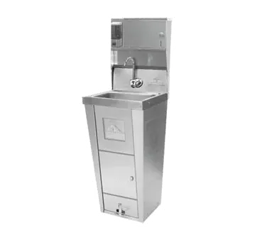 Introducing the Advance Tabco, 7-PS-99 Hand Sink, designed to simplify restaurant operations. This pedestal-mounted sink is a must-have for any commercial restaurant, offering convenience and efficiency in one compact unit. The 14" wide x 10" front-to-back x 5" deep bowl is made of 20 gauge 304 stainless steel, ensuring durability and easy cleaning. The splash-mounted faucet, soap, and paper towel dispenser provide easy access to essential hygiene supplies, while the pedal valves with an easy access design make it effortless to control water flow. The sink also features a trash receptacle and cabinet storage, allowing for a tidy and organized workspace. With a basket drain and wall bracket included, installation is a breeze. NSF and cCSAus certified, this hand sink meets the highest standards of quality and safety. Streamline your restaurant operations with the Advance Tabco, 7-PS-99 Hand Sink.