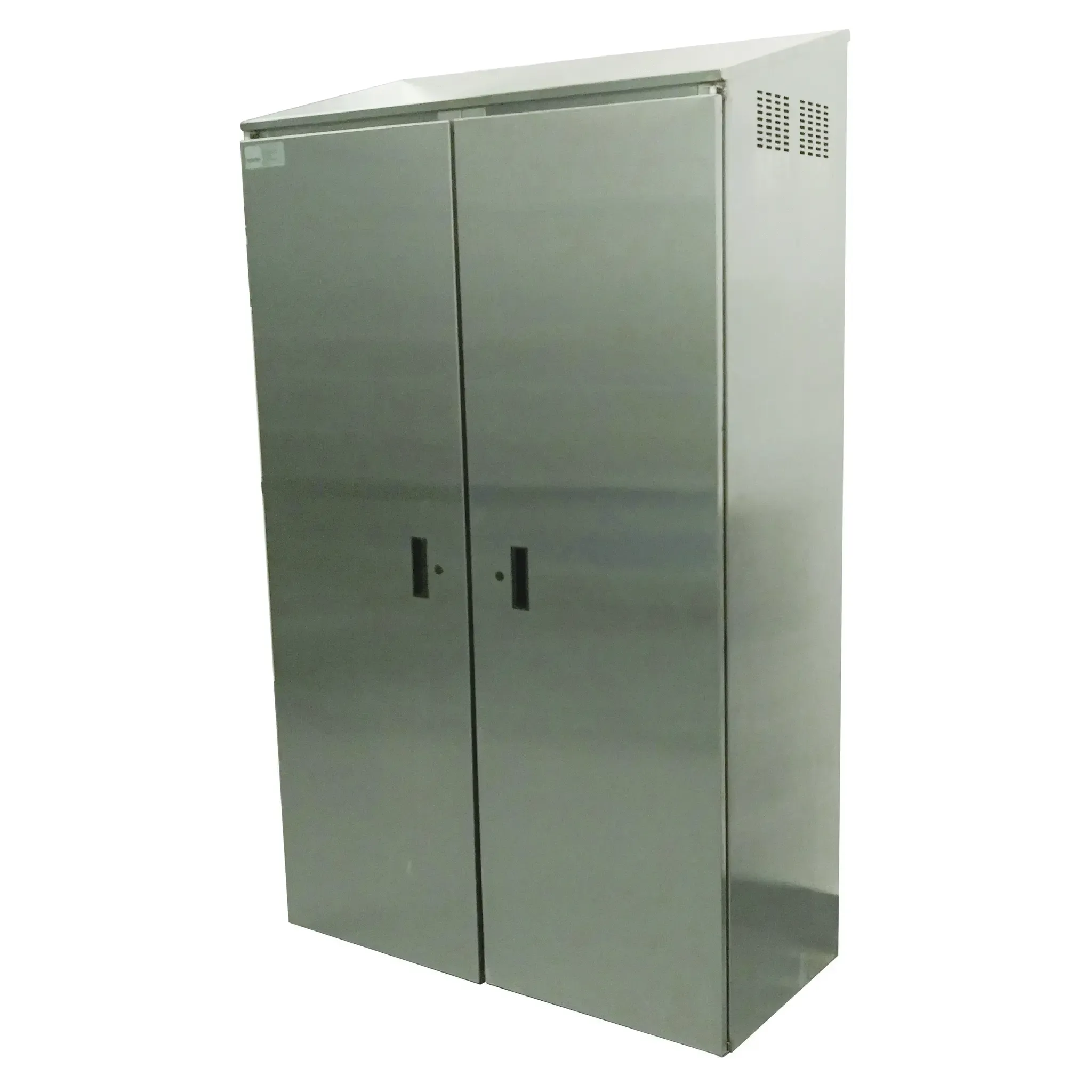 Inside, you'll find four fixed intermediate shelves—three on the left and one on the right above the sink—offering plenty of storage space for cleaning supplies and other essentials. The slotted side panels provide necessary ventilation, maintaining a fresh and hygienic environment.
