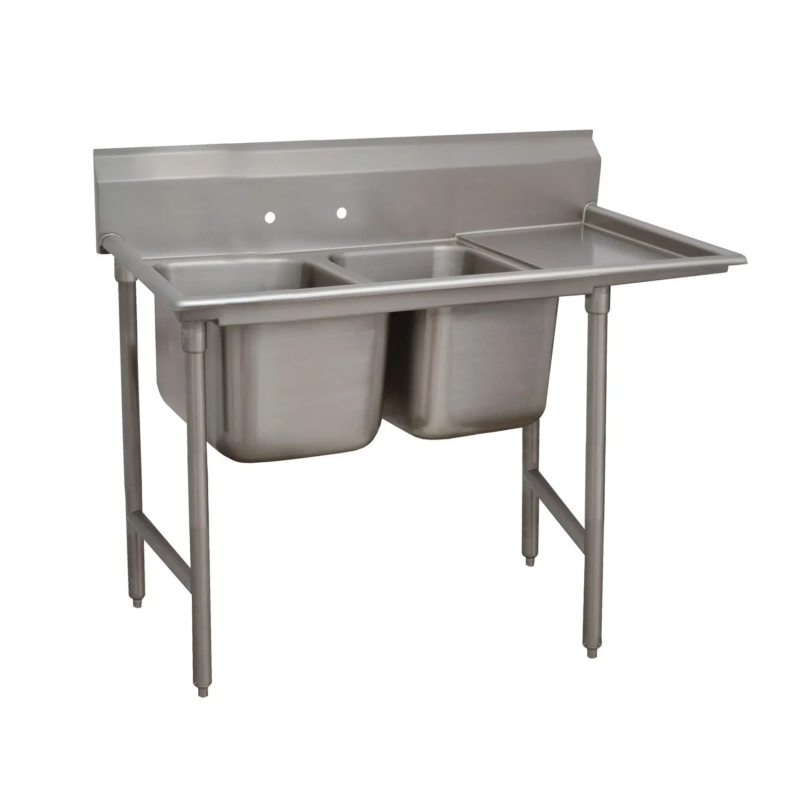 Enhance your commercial kitchen with the Advance Tabco, 93-82-40-24R, Sink, (2) Two Compartment. This Regaline Sink is designed to meet the demands of a busy restaurant environment. With its 2-compartment layout and right-hand drainboard, it provides ample space for washing and rinsing dishes. The sink compartments measure 28" front-to-back x 20"W and are 12" deep, allowing for easy cleaning of large pots and pans. The 8"H backsplash helps to keep the surrounding area clean and prevents water from splashing onto the walls. The stainless steel open frame base with side crossrails provides stability and durability, ensuring that this sink will withstand the rigors of daily use. The 24" drainboard offers additional workspace for drying dishes or prepping ingredients. With its adjustable bullet feet, you can easily level the sink on any surface. Made of 16 gauge 304 stainless steel, this sink is built to last. NSF certified, it meets the highest standards of sanitation and hygiene. Upgrade your kitchen with the Advance Tabco, 93-82-40-24R, Sink, (2) Two Compartment and experience the convenience and efficiency it brings to your restaurant operations.