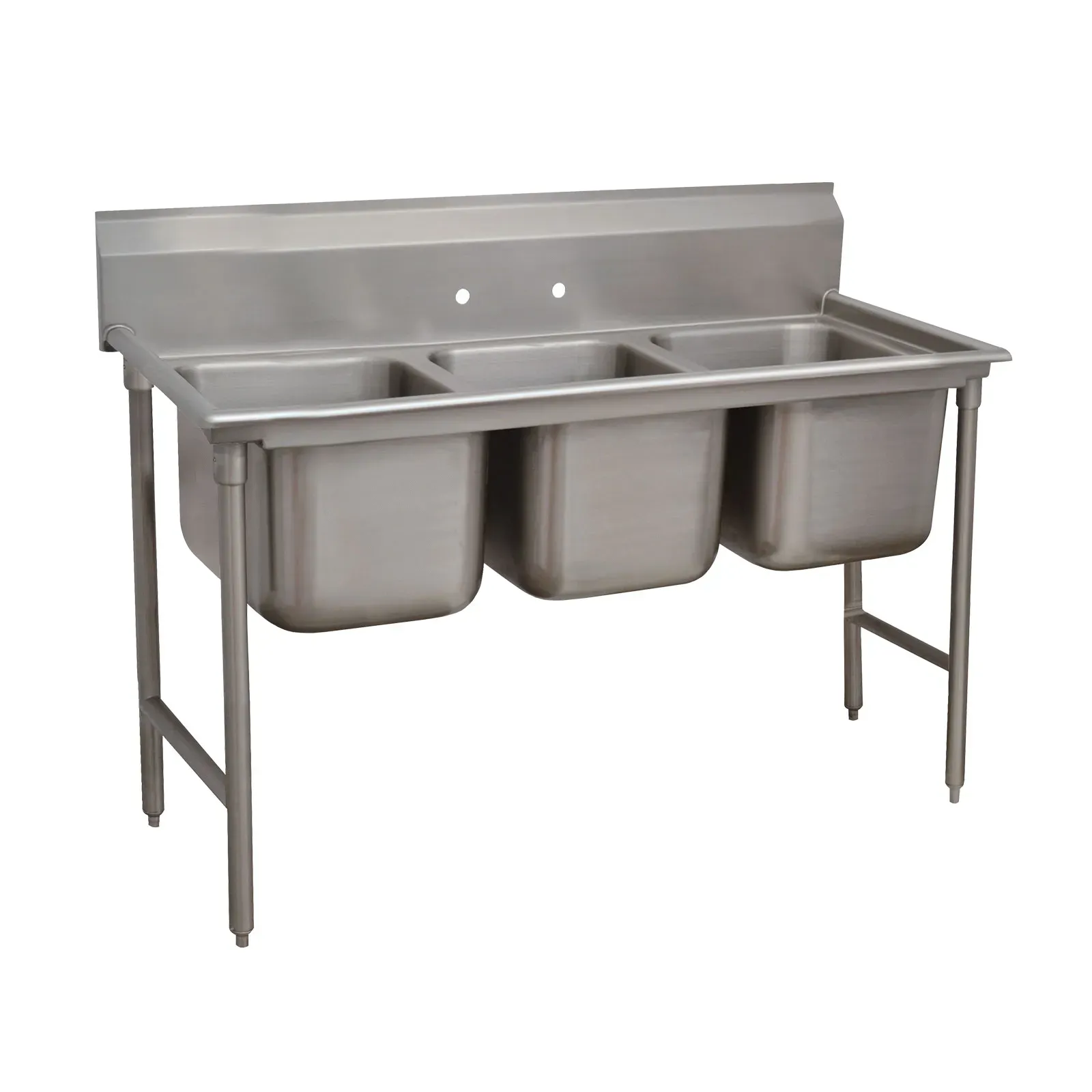 Master the art of flavor with the Advance Tabco, 93-83-60, Sink, (3) Three Compartment. This commercial-grade sink is designed to meet the demands of a busy restaurant kitchen. With its 28" front-to-back x 20" wide sink compartments and 12" depth, it provides ample space for washing and rinsing dishes, pots, and pans. The 8" high splash helps to contain water and prevent messes, while the stainless steel open frame base with side crossrails ensures stability and durability. The 1" adjustable bullet feet allow for easy leveling on uneven surfaces. Made of 16 gauge 304 stainless steel, this sink is built to withstand the rigors of a commercial kitchen and is NSF certified for food safety. Whether you're running a small cafe or a bustling restaurant, the Advance Tabco, 93-83-60, Sink, (3) Three Compartment is a reliable and efficient choice for your kitchen.