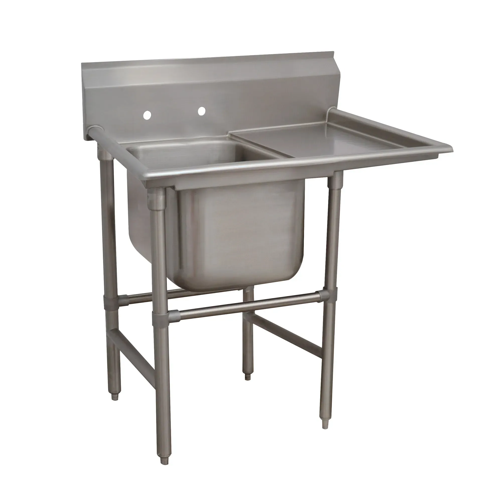 Equip your commercial kitchen with the Advance Tabco, 94-1-24-24R Sink. This Regaline Sink is designed for heavy-duty use in a commercial restaurant setting. With its one-compartment design and right-hand drainboard, it offers convenience and efficiency in dishwashing and food preparation tasks. The sink compartment measures 20" front-to-back x 16"W and is 14" deep, providing ample space for washing large pots, pans, and dishes. The sink also features an 11"H backsplash to prevent water splashes and spills, keeping your kitchen clean and safe. Made of 14 gauge 304 stainless steel, this sink is durable and resistant to corrosion, ensuring long-lasting performance. The stainless steel legs with welded front-to-rear and adjustable left-to-right cross rails provide stability and support. Additionally, the sink comes with a 24" drainboard for drying dishes. NSF certified, this Advance Tabco sink meets the highest standards of sanitation and hygiene. Upgrade your kitchen with this high-quality sink and streamline your dishwashing process.