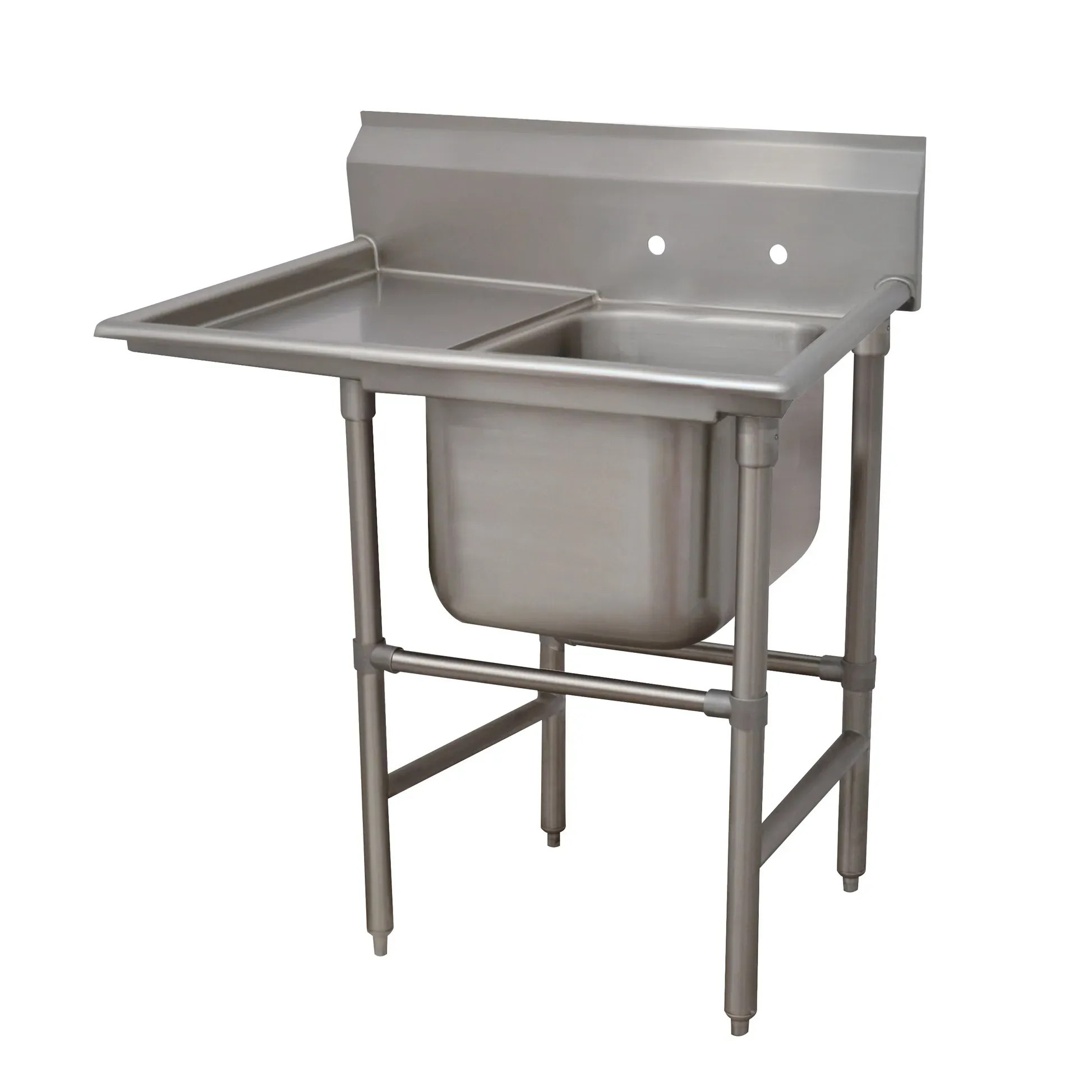 Discover kitchen perfection with the Advance Tabco, 94-21-20-24L Sink. This one-compartment sink is designed to meet the demands of a commercial restaurant setting. Made with 14 gauge 304 stainless steel, it ensures durability and longevity, even in the busiest kitchen environments. The sink features a 20" front-to-back x 20"W sink compartment, providing ample space for washing dishes and utensils. With a 14" deep sink and an 11"H backsplash, it prevents water from splashing onto the surrounding areas, keeping your kitchen clean and hygienic. The left-hand drainboard offers convenient space for drying dishes, while the stainless steel legs with welded front-to-rear and adjustable left-to-right cross rails provide stability and support. The 1" adjustable bullet feet allow for easy leveling on uneven surfaces. NSF certified, this sink is a reliable and essential addition to any commercial restaurant kitchen.