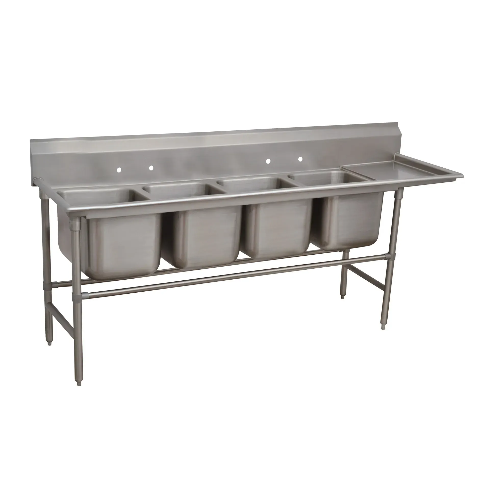 Kitchen innovation at its best, the Advance Tabco 94-24-80-18R Sink is a must-have for any commercial restaurant. This Regaline Sink features four compartments, each measuring 20" front-to-back x 20"W and 14" deep, providing ample space for all your dishwashing needs. The sink also comes with an 11"H backsplash, ensuring a clean and hygienic workspace.