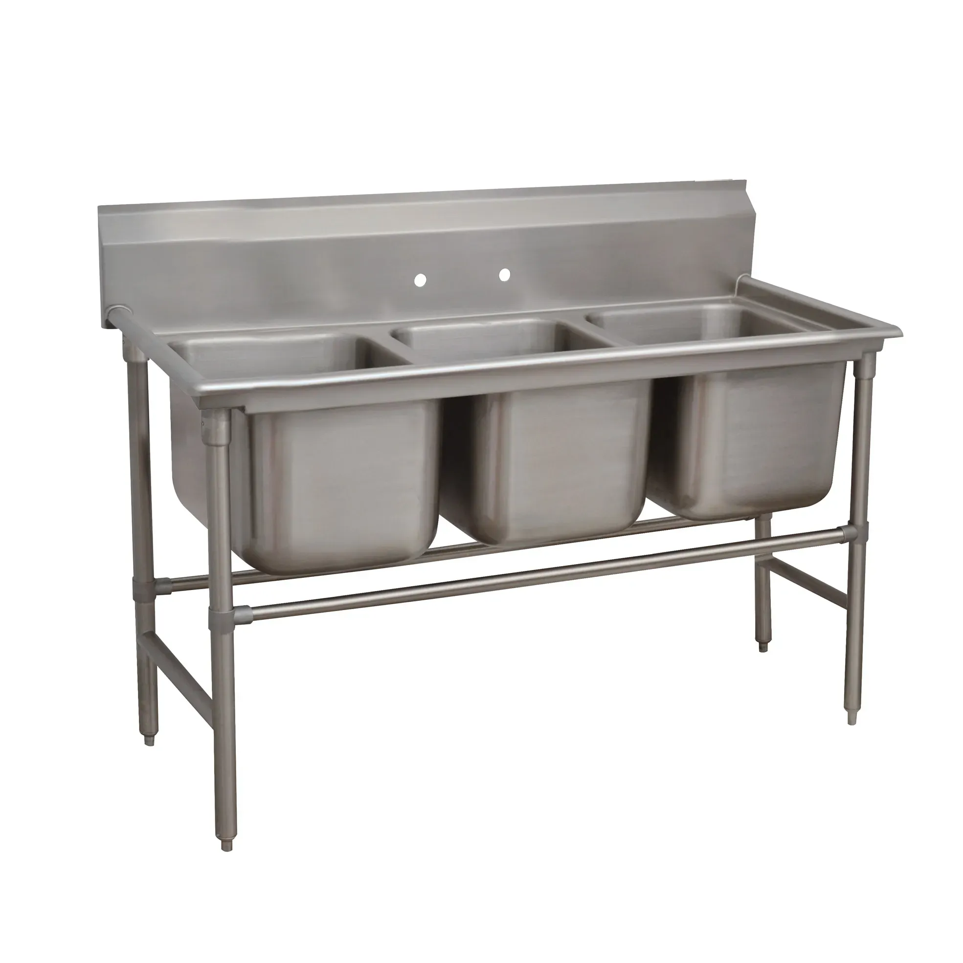 Unleash your inner chef with the Advance Tabco, 94-43-72, Sink, (3) Three Compartment. This commercial-grade sink is perfect for any restaurant kitchen, providing the durability and functionality you need to keep up with the demands of a busy establishment. The sink features three 24" wide compartments, each 14" deep, allowing for ample space to wash and rinse dishes, pots, and pans. The 11" high splash helps to contain water and prevent messes, while the stainless steel legs with welded front-to-rear and adjustable left-to-right cross rails provide stability and support. Made from 14 gauge 304 stainless steel, this sink is built to withstand the rigors of a commercial kitchen. NSF certified, it meets the highest standards of cleanliness and sanitation. Upgrade your kitchen with the Advance Tabco, 94-43-72, Sink, (3) Three Compartment and experience the convenience and efficiency it brings to your restaurant operations.