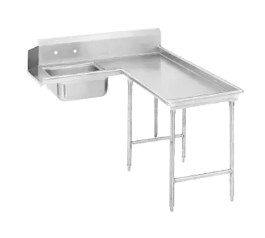 Additionally, the dishtable includes a pre-rinse sink, allowing for quick and thorough rinsing of dishes before they enter the washing cycle. This feature is essential for removing food particles and reducing the risk of clogging your dishwasher.