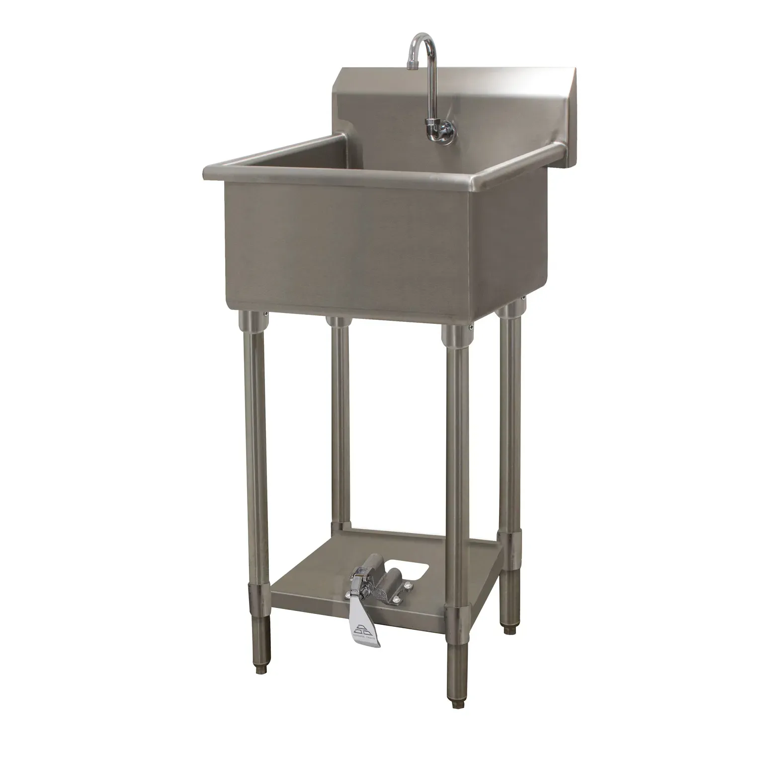 Culinary excellence in every dish starts with the right equipment, and the Advance Tabco FC-FM-2219FV Hand Sink is a must-have for any commercial restaurant. This floor model sink is designed to meet the rigorous demands of a busy kitchen, ensuring efficiency and cleanliness. The 12" deep bowl provides ample space for washing and rinsing, while the 16 ga stainless steel construction guarantees durability and longevity. The 8-1/2"H backsplash helps to prevent splashes and spills, keeping your workspace clean and hygienic. With a single faucet hole and a gooseneck spout, this sink offers convenience and versatility. It also includes stainless steel legs and flanged feet for stability, as well as a pedal bracket support for easy operation. NSF certified and equipped with a 1-1/2" basket drain, this hand sink meets the highest standards of quality and sanitation. Upgrade your kitchen with the Advance Tabco FC-FM-2219FV Hand Sink and experience the difference in performance and reliability.