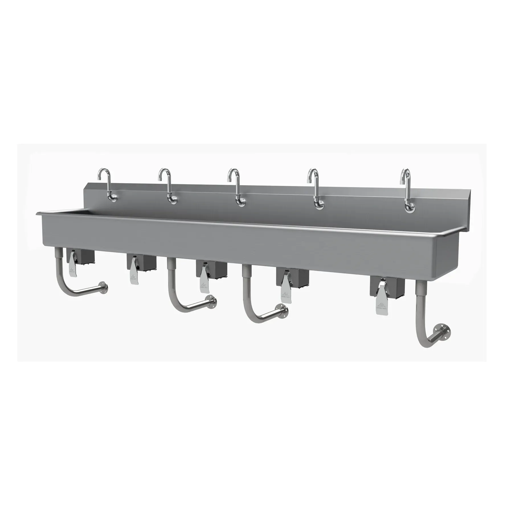 Culinary artistry redefined with the Advance Tabco FC-WM-100KV Hand Sink. This wall-mounted sink is designed to meet the needs of a busy commercial restaurant kitchen. With its spacious 100"W x 19-1/2"D x 29-1/2"H dimensions, it provides ample space for multiple chefs to work simultaneously. The 16" front-to-back x 8" deep bowl size is perfect for washing and rinsing dishes, utensils, and ingredients. The sink is made of durable 16 gauge 304 stainless steel construction, ensuring long-lasting performance in a demanding environment. The punched design with five single faucet holes allows for easy installation of gooseneck spouts, providing flexibility and convenience. The included 3-1/2" rear basket drain helps to prevent clogs and maintain a clean workspace. With its NSF certification, this hand sink meets the highest standards of sanitation and hygiene. Elevate your culinary experience with the Advance Tabco FC-WM-100KV Hand Sink.