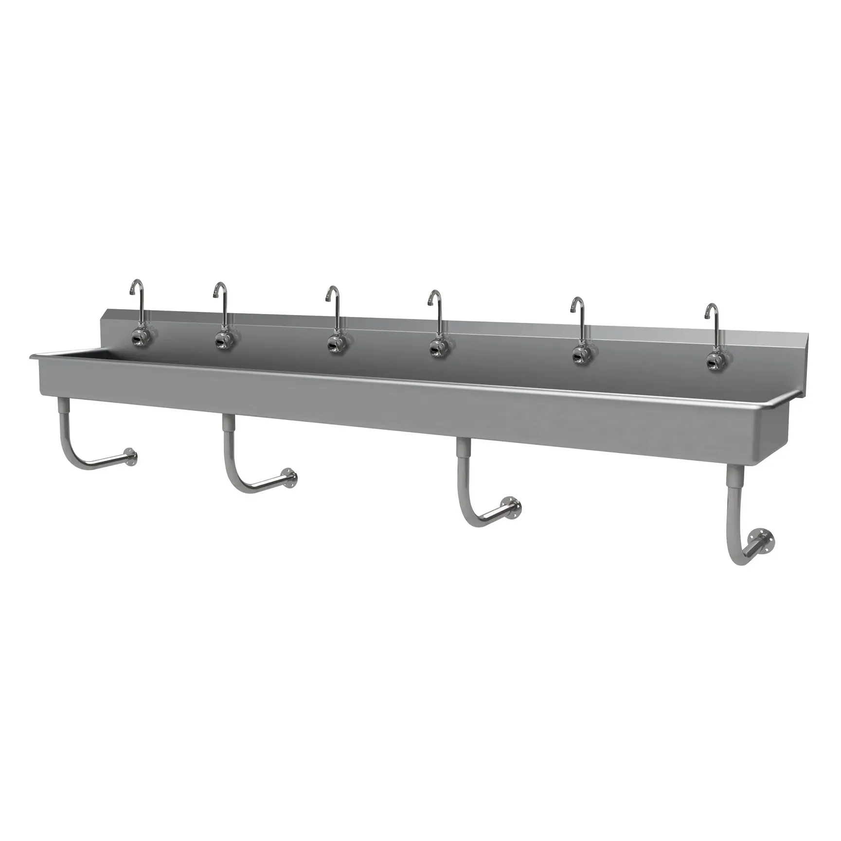 Achieve culinary excellence with the Advance Tabco FC-WM-120EFADA Hand Sink. This wall-mounted sink is designed specifically for commercial restaurant use, ensuring that your kitchen operates at its best. With six electronic faucets, this sink provides convenience and efficiency, allowing multiple staff members to wash their hands simultaneously. The sink measures 120"W x 19-1/2"D x 25-1/2"H overall, with a 16" front-to-back x 5" deep bowl size, providing ample space for handwashing. The 8-1/2"H backsplash and punched single faucet holes add to the sink's functionality and ease of use. Made of 16 gauge 304 stainless steel, this sink is durable and easy to clean, meeting NSF standards. It also includes tubular stainless steel wall supports for added stability. ADA compliant, this sink ensures accessibility for all users. Upgrade your restaurant's handwashing station with the Advance Tabco FC-WM-120EFADA Hand Sink.