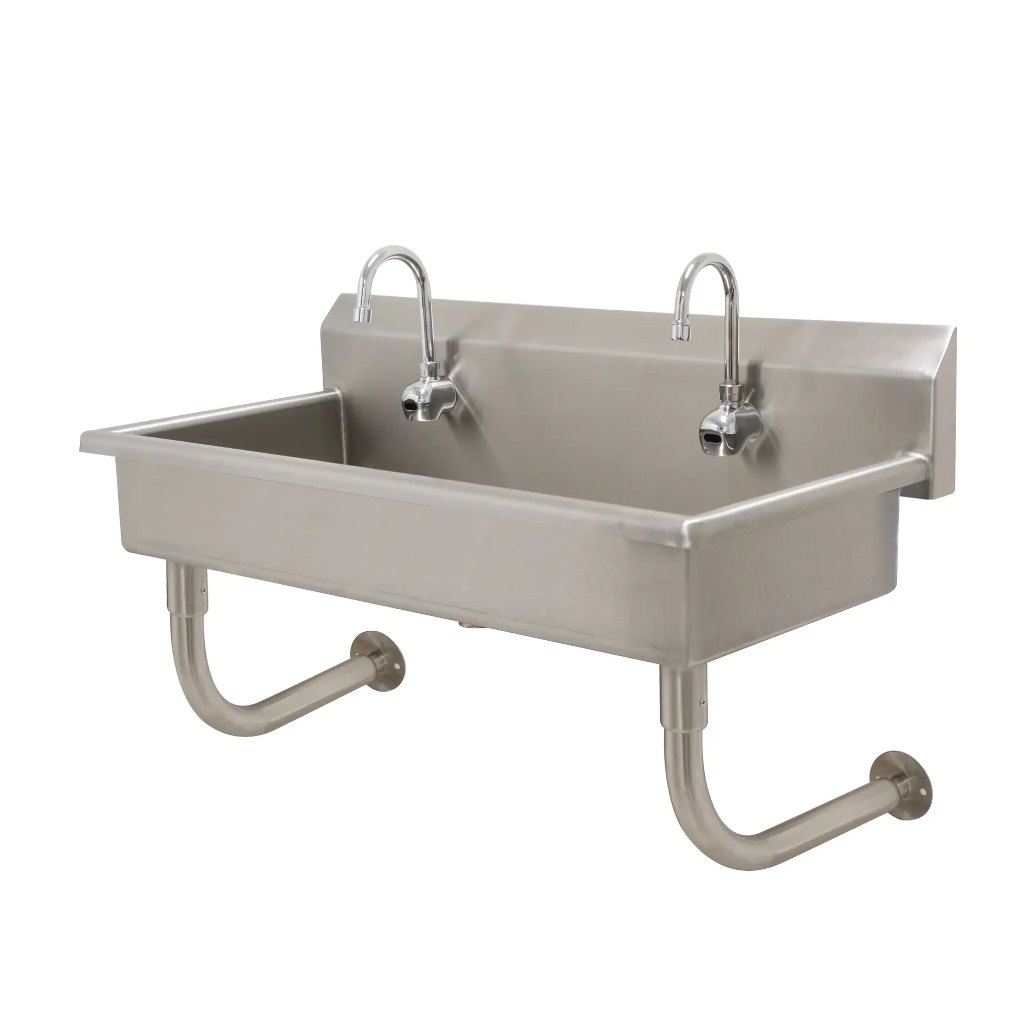 Elevate your culinary experience with the Advance Tabco FC-WM-40EF Hand Sink. This wall-mounted sink is designed specifically for commercial restaurant use, ensuring durability and functionality. Made with 16 gauge 304 stainless steel construction, this sink is built to withstand the demands of a busy kitchen. The 40"W x 19-1/2"D x 29-1/2"H size provides ample space for washing and rinsing, while the 8-1/2"H backsplash helps to keep the surrounding area clean. The sink features two electronic faucets, allowing for easy and hygienic handwashing. The 16" front-to-back x 8" deep bowl size is perfect for accommodating large pots and pans. With its punched single faucet holes and included rear basket drain, this hand sink offers convenience and efficiency. Trust Advance Tabco to deliver high-quality, reliable products for your commercial restaurant needs.