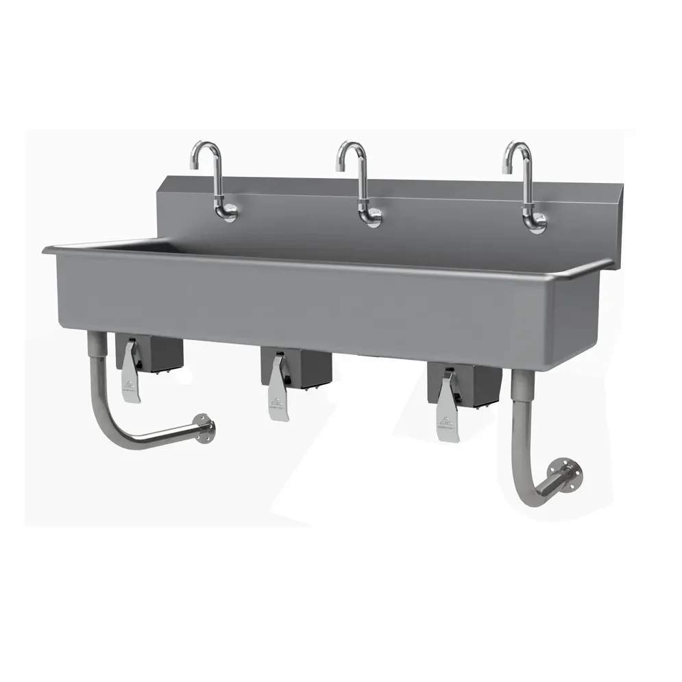 Introducing the Advance Tabco FC-WM-60KV Hand Sink, the perfect addition to dominate the culinary world in your commercial restaurant. This wall-mounted hand sink is designed to meet the rigorous demands of a busy kitchen. With its 16-gauge 304 stainless steel construction, it ensures durability and longevity, even in the most demanding environments. The 8-1/2" backsplash and punched with three single faucet holes provide convenience and functionality. The gooseneck spouts and 3-1/2" rear basket drain further enhance the efficiency of this hand sink. Measuring 60"W x 19-1/2"D x 29-1/2"H overall, it offers ample space for handwashing. The tubular stainless steel wall supports provide stability and support. NSF certified, this hand sink guarantees the highest standards of hygiene and safety. Upgrade your restaurant's kitchen with the Advance Tabco FC-WM-60KV Hand Sink and experience the difference it makes in maintaining cleanliness and efficiency.