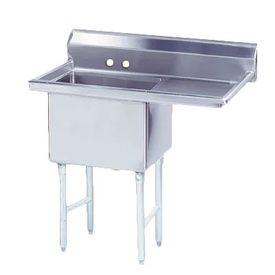 Cook with precision using the Advance Tabco FS-1-1620-18R Sink, (1) One Compartment. This fabricated sink is designed to meet the demands of a busy commercial restaurant kitchen. Made from 14 gauge 304 stainless steel, it is durable and resistant to corrosion, ensuring long-lasting performance. The 18" right drainboard provides ample space for drying dishes and utensils, while the 16" x 20" x 14" deep bowl size accommodates large pots and pans. The tile edge splash and rolled edge prevent water from splashing onto the surrounding area, keeping your kitchen clean and safe. With 8" OC faucet holes, you can easily install a faucet of your choice. The stainless steel legs with 1" adjustable stainless steel bullet feet provide stability and allow for easy leveling. NSF certified, this sink meets the highest standards of sanitation and hygiene. Upgrade your restaurant kitchen with the Advance Tabco FS-1-1620-18R Sink and experience the convenience and efficiency it brings.