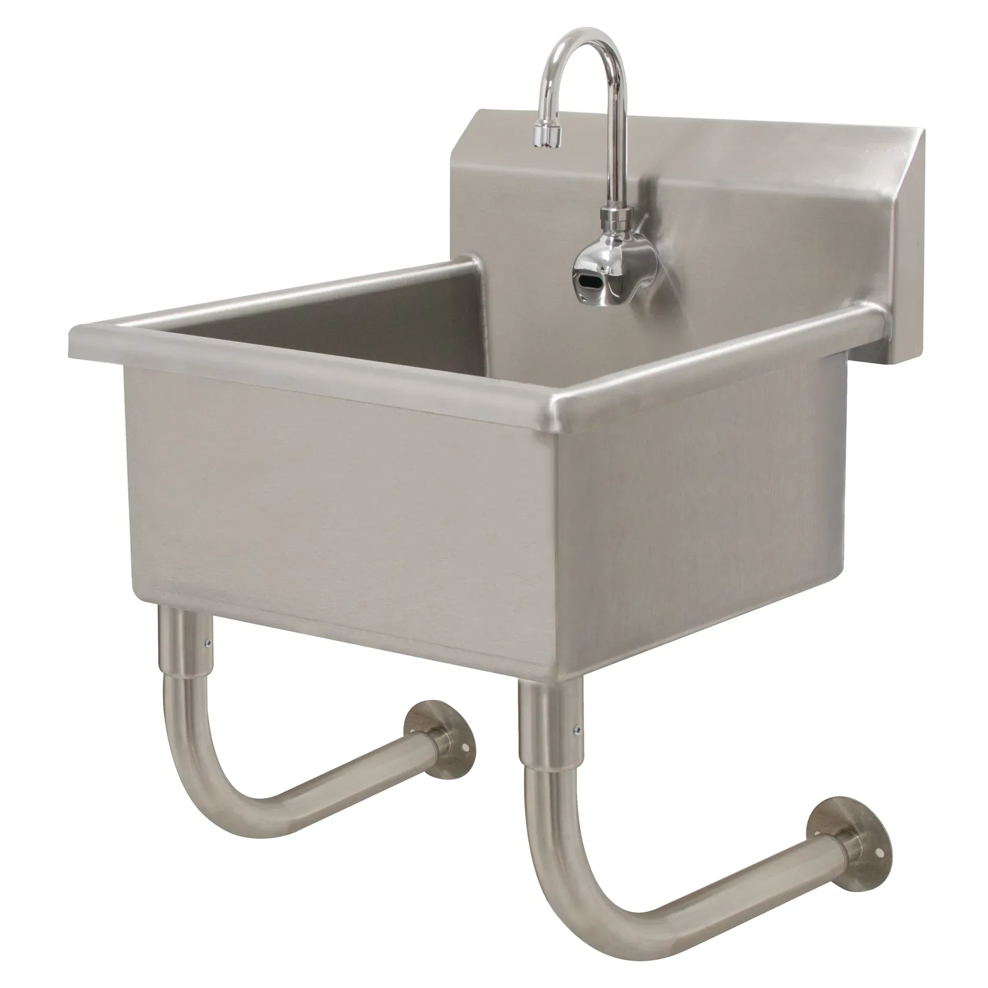 Maximize your food service potential with the Advance Tabco FS-WM-2721EF Hand Sink. This wall-mounted service sink is designed specifically for commercial restaurant use, ensuring durability and functionality. The sink features a 12" deep bowl made of 14-gauge stainless steel, providing ample space for washing hands and utensils. The 8-1/2" high backsplash helps to prevent water splashes and keeps the surrounding area clean. With a single faucet hole and an included electronic faucet, this hand sink offers convenience and efficiency. The stainless steel tubular wall supports ensure stability and strength, making it suitable for heavy-duty use. Additionally, the sink is NSF certified, guaranteeing its compliance with strict sanitation standards. Upgrade your restaurant's hygiene standards and streamline your operations with the Advance Tabco FS-WM-2721EF Hand Sink.