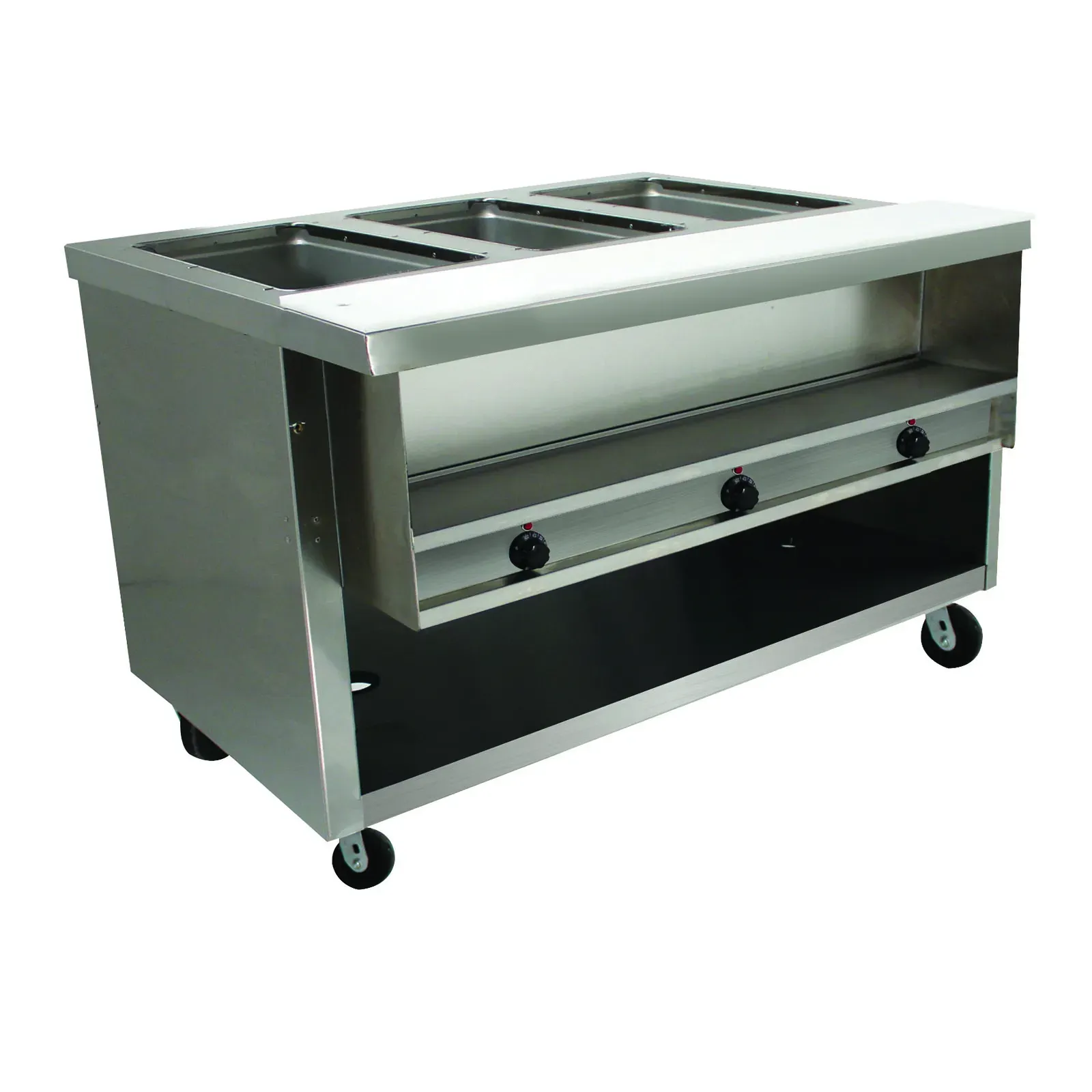 The Advance Tabco Heavy Duty Sealed Well Hot Food Table features three 12" x 20" insulated wells, each capable of accommodating pan inserts up to 6-1/4" deep. This ensures your hot foods stay at the perfect serving temperature. Each well is equipped with individual thermostatic controls, allowing for precise temperature management to suit a variety of dishes.