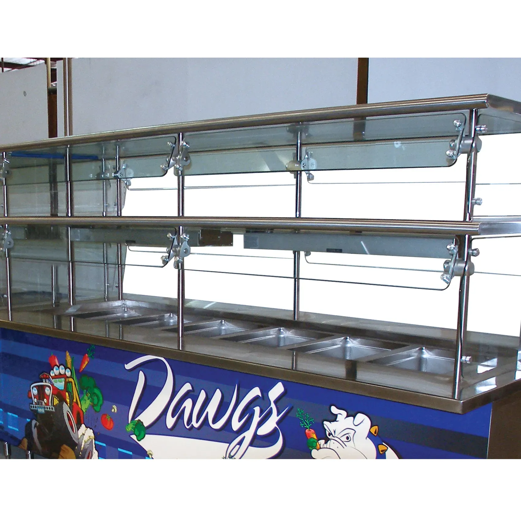 Equipped with Chamber Lock technology, this food shield is fixed to upright legs, allowing for rotation in 15-degree intervals. This feature provides flexibility in positioning, ensuring optimal protection and accessibility for your self-service stations.