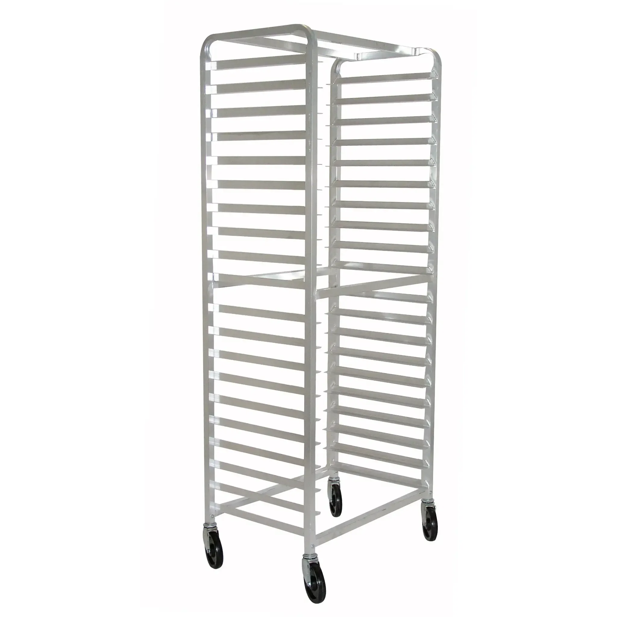 Constructed from all-welded aluminum, the Advance Tabco Pan Rack is built to withstand the rigors of a commercial kitchen while remaining lightweight and easy to maneuver. The 5" swivel casters allow for smooth mobility, so you can effortlessly transport your pans from prep areas to ovens or storage spaces.