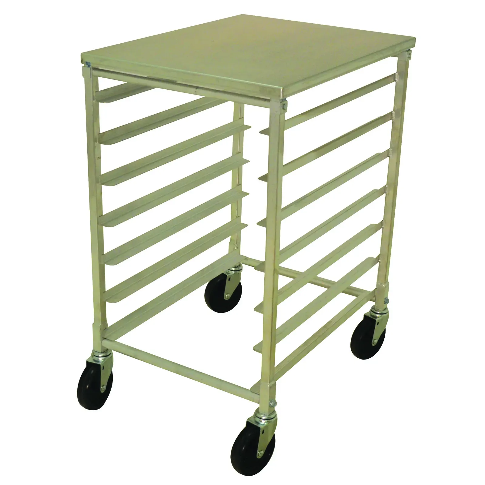 The Advance Tabco Pan Rack boasts a capacity for seven 18" x 26" sheet pans, making it ideal for organizing and transporting baked goods, prepared ingredients, or cooked dishes. The slides are positioned on 3-7/8" centers, ensuring optimal spacing and easy access to each pan. Constructed with 1-1/2" ribbed angles, this rack provides robust support and stability for your pans.