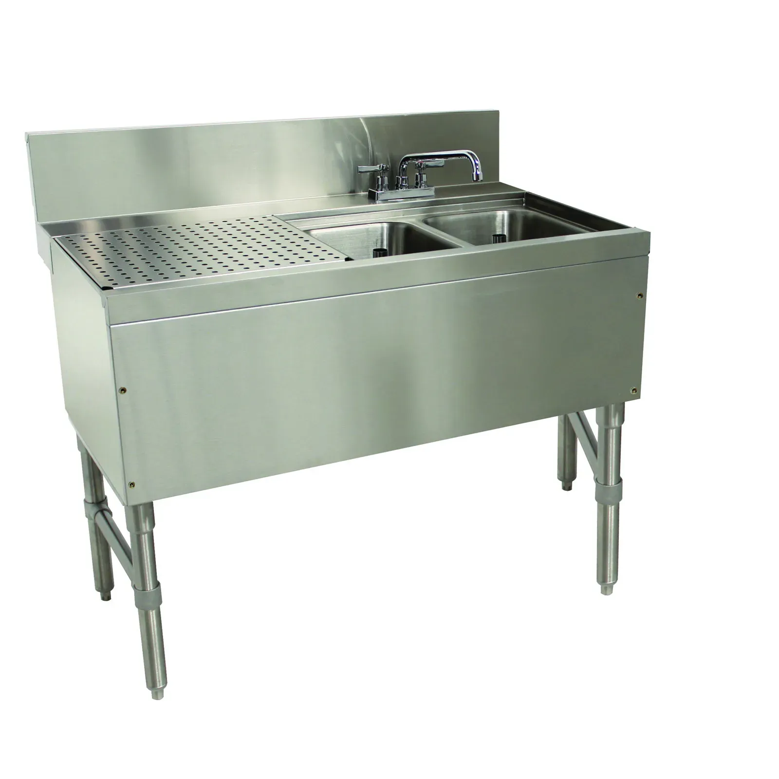 Streamline your operations using the Advance Tabco Prestige Underbar Sink Unit. Designed with the busy restaurant environment in mind, this high-quality unit, model PRB-24-42R, offers a perfect blend of functionality and durability. Measuring 48 inches wide, 25 inches deep, and 36 inches high, it fits seamlessly into your underbar space, optimizing your workflow and efficiency.