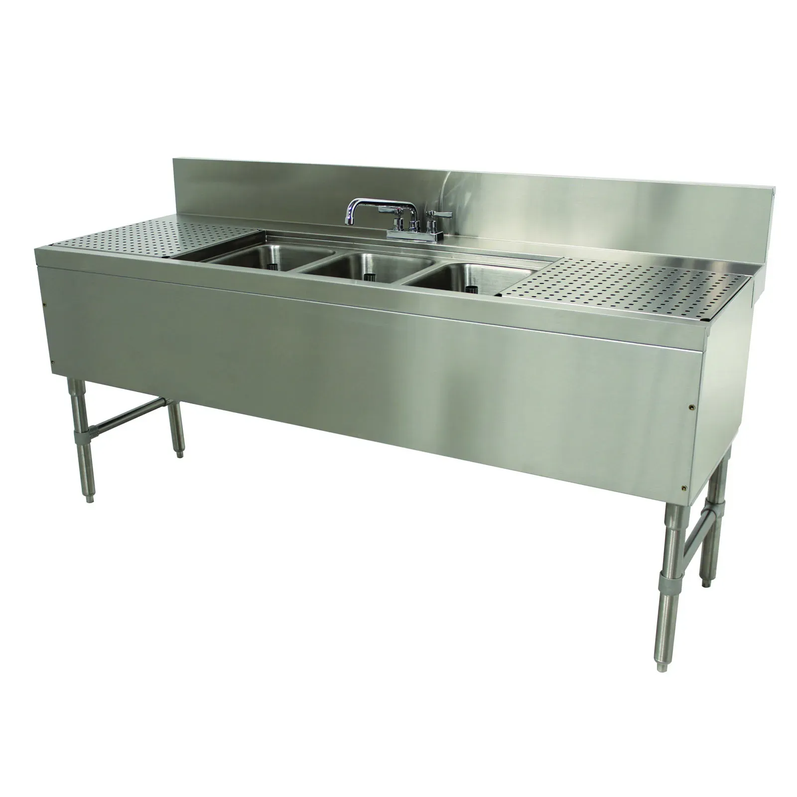 Equipped with 30" drainboards on both the left and right sides, this unit offers additional workspace for drying and organizing your kitchenware. The 7"H backsplash helps protect your walls from water splashes, keeping your kitchen clean and safe.