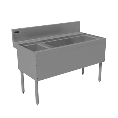The 7-inch backsplash and 25-inch front-to-back design make this ice chest a practical addition to any bar or kitchen setup, protecting your walls from splashes and spills. Additionally, the soda chase provision in the top of the backsplash allows for seamless integration with your soda dispensing system, enhancing the overall functionality of your workspace.