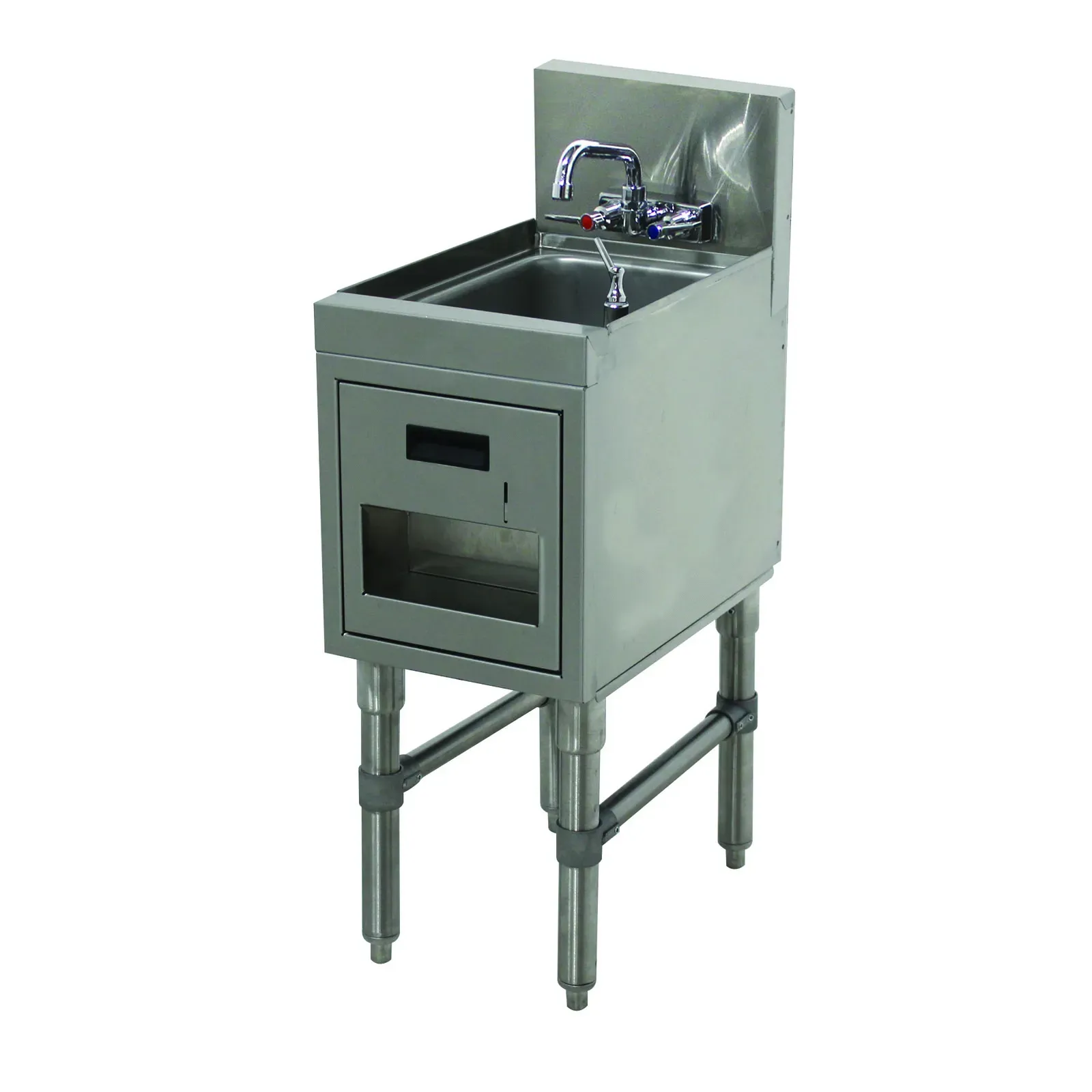 Constructed from durable stainless steel, the Prestige Hand Sink is built to withstand the rigors of a busy kitchen environment. The adjustable bullet feet allow for easy leveling on uneven surfaces, ensuring stability and safety. Additionally, this hand sink is NSF certified, guaranteeing that it meets the highest standards for public health protection.