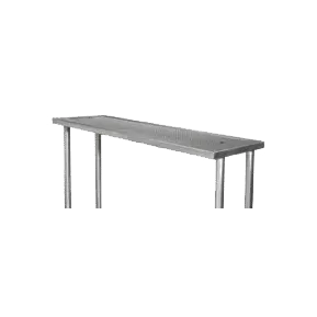 The tubular legs offer sturdy support, ensuring stability even in high-traffic areas. This pass-thru station mounts seamlessly onto Prestige pass-through workstations with a standard perforated drainboard shelf, creating a double-tier shelf system that maximizes storage and organization.