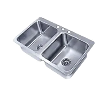 Introducing the Advance Tabco SS-2-3321-10 Drop-In Sink, the perfect addition to dominate the culinary world in any commercial restaurant. This Smart Series sink features a self-rim design with two compartments, providing ample space for all your dishwashing needs. The 14"W x 16" front-to-back x 10" deep bowls are made of durable 18/304 stainless steel, ensuring long-lasting performance in a busy kitchen environment. With 8" OC faucet holes, including 1-1/4" diameter hot & cold water and 1" diameter center hole, this sink offers versatility and convenience. The package includes 3-1/2" basket drains and mounting clips, making installation a breeze. Designed by Advance Tabco, a trusted name in the industry, this drop-in sink is built to withstand the demands of a commercial restaurant, providing reliability and efficiency. Upgrade your kitchen with the Advance Tabco SS-2-3321-10 Drop-In Sink and experience the difference in performance and durability.