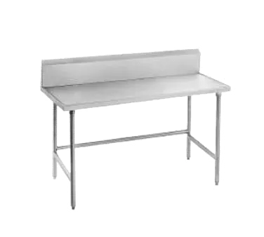 Realize kitchen dreams with the Advance Tabco TVKG-303 Work Table. This stainless steel work table is designed to meet the demands of a commercial restaurant kitchen. The 14 gauge 304 stainless steel top with a countertop non-drip edge provides a durable and easy-to-clean surface for food preparation. The 10-inch high backsplash helps to keep the area clean and prevents spills from reaching the floor. The galvanized legs with side and rear cross rails offer stability and support for heavy loads. With adjustable plastic bullet feet, you can easily level the table on uneven surfaces. This work table is NSF certified, ensuring that it meets the highest standards of cleanliness and sanitation. Whether you need a sturdy surface for chopping vegetables or a place to assemble dishes, the Advance Tabco TVKG-303 Work Table is the perfect addition to any commercial kitchen.