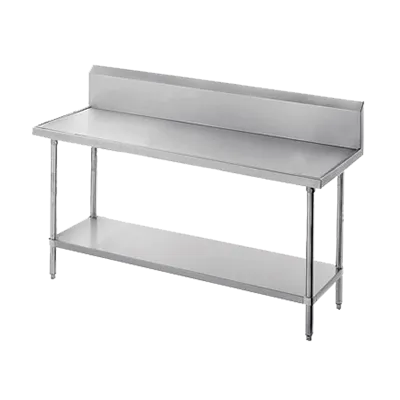 Cook with confidence and flair with the Advance Tabco VKS-363 Work Table. This work table is designed to meet the demands of a commercial restaurant kitchen, providing a sturdy and reliable surface for food preparation. The 14 gauge 304 stainless steel top with a countertop non-drip edge ensures durability and easy cleaning, while the 10" backsplash helps to keep your kitchen clean and organized. The adjustable stainless steel undershelf offers additional storage space for utensils, ingredients, and equipment, keeping everything within reach. The stainless steel legs and adjustable bullet feet provide stability and allow for easy leveling on uneven surfaces. NSF certified, this work table meets the highest standards of sanitation and safety. Whether you're chopping vegetables, assembling ingredients, or plating dishes, the Advance Tabco VKS-363 Work Table is the perfect addition to any commercial restaurant kitchen.
