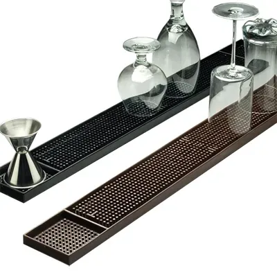 Unleash Your Inner Chef with the American Metalcraft BM23 Bar Mat. This one-piece, rubber construction mat is designed to enhance your commercial restaurant experience. Measuring 3-1/4" x 27" long, it provides ample space for bartenders to work their magic. The dark brown color adds a touch of sophistication to any bar setup. Its rubber construction makes it easy to clean and maintain, saving you time and effort. This bar mat is perfect for preventing spills and protecting your bar top from scratches and stains. Whether you're a professional bartender or a restaurant owner, the American Metalcraft BM23 Bar Mat is a must-have accessory that combines functionality and style to elevate your commercial restaurant game.