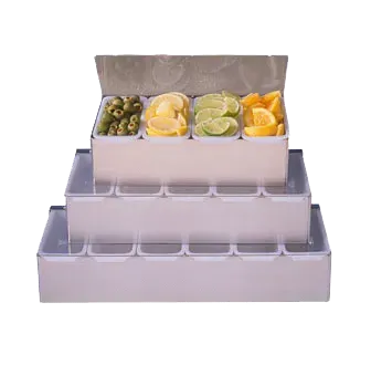 Unleash Your Creative Genius with the American Metalcraft CD4 Bar Condiment Holder. This stainless steel metal holding dispenser is designed to elevate your restaurant's condiment organization to new heights. With four plastic containers that hold 400 ml each, you'll have plenty of space to store all your essential bar condiments. The sleek and durable design ensures that this dispenser will withstand the demands of a busy commercial restaurant. Whether you're serving up cocktails or preparing garnishes, this condiment holder will keep everything within reach and neatly organized. The compact size of 12"L x 5-3/4"W x 3-1/2"H allows for easy placement on any bar or countertop. Say goodbye to messy and cluttered condiment stations and hello to efficiency and professionalism. Trust American Metalcraft to provide you with the highest quality bar condiment holder for your restaurant.