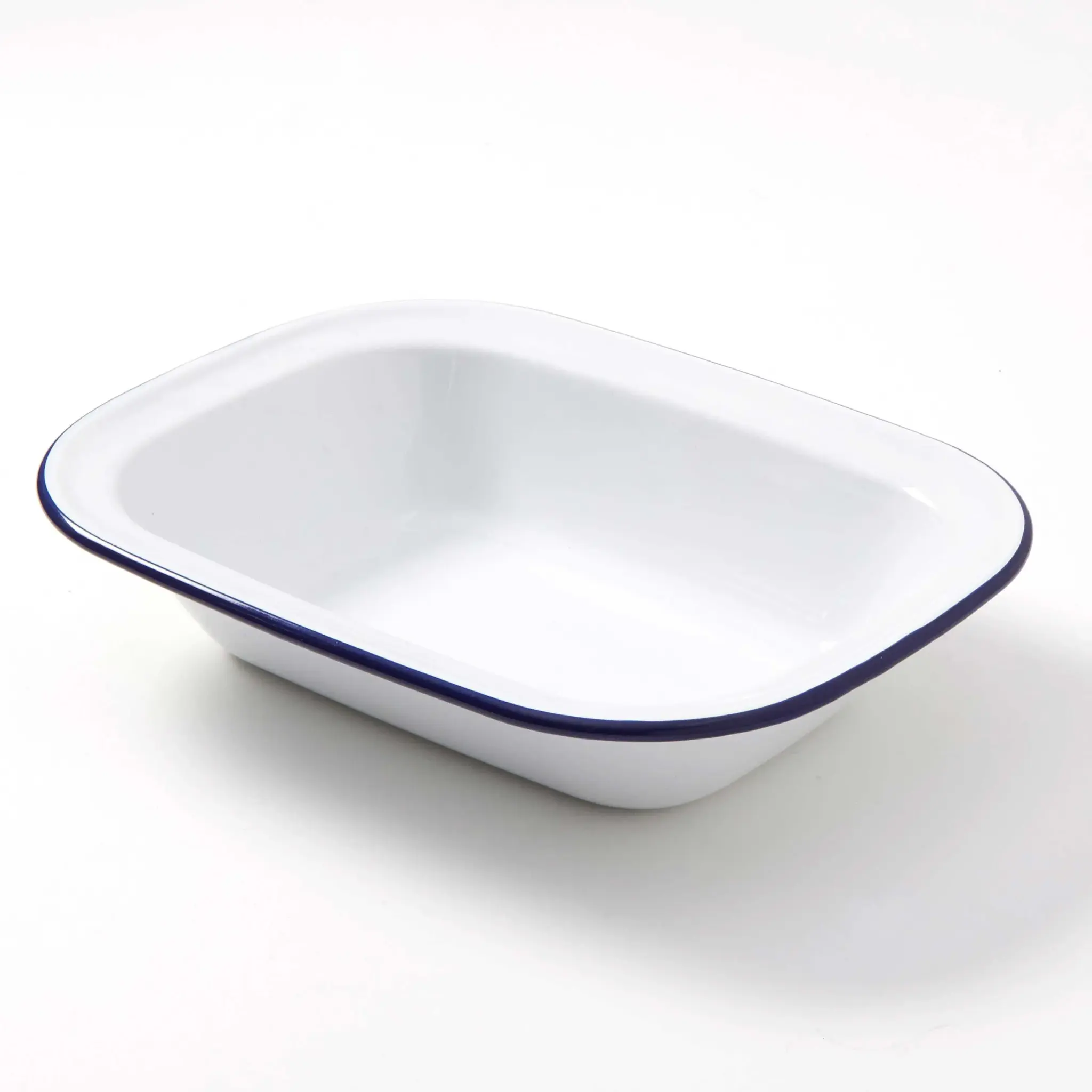 Bringing Culinary Dreams to Life with American Metalcraft, EWB10, Bowl, Metal, 1 - 2 Qt (32 - 95 Oz). This enamelware bowl is a must-have for any commercial restaurant. With a generous capacity of 32 oz., it is perfect for serving soups, salads, and other delectable dishes. The oblong shape and white with blue rim design add a touch of elegance to your presentation, impressing both customers and staff. Made of enamel coated steel, this bowl is durable and long-lasting, ensuring it can withstand the demands of a busy kitchen. Hand wash only, it is easy to clean and maintain. American Metalcraft, a trusted name in the industry, has packed this bowl with care, guaranteeing its quality. Elevate your culinary creations with the American Metalcraft EWB10 bowl and make a lasting impression on your customers.