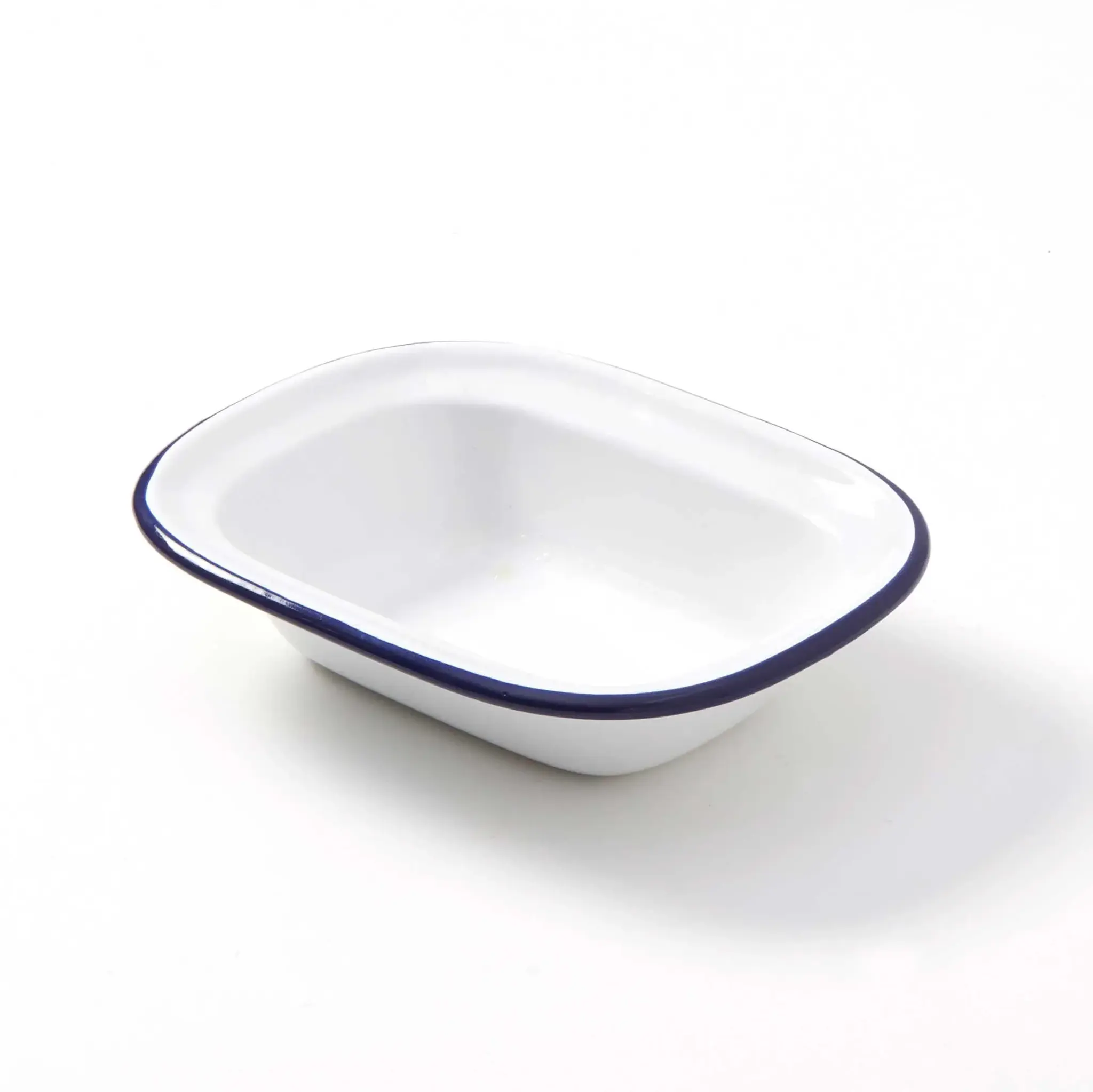 Inspire Culinary Brilliance with the American Metalcraft EWB6 Metal Bowl. This enamelware bowl is a must-have for any commercial restaurant. With a capacity of 8 oz., it is perfect for serving individual portions of soups, salads, or desserts. The oblong shape and white with blue rim design add a touch of elegance to your presentation. Made of enamel coated steel, this bowl is durable and easy to clean. Its compact size, measuring 6-1/4"L x 4-7/8"W x 1-1/2"H, makes it ideal for saving space on your tabletops. Hand wash only to maintain its pristine appearance. Whether you're running a bustling diner or a high-end bistro, the American Metalcraft EWB6 Metal Bowl is a versatile and stylish addition to your restaurant's tableware collection.