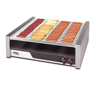 Culinary excellence with superior kitchen gear begins with the APW Wyott HR-75 Hot Dog Grill. Designed specifically for commercial restaurant use, this hot dog grill is a must-have for any food establishment. With its chrome surface rollers and infinite controls, you can easily cook and serve delicious hot dogs to perfection. The removable grease pan ensures easy cleaning, while the stainless steel exterior and coated steel bottom guarantee durability and longevity. This hot dog grill is UL, CSA, NSF, and CE certified, ensuring its safety and compliance with industry standards. Whether you're running a food truck, concession stand, or restaurant, the APW Wyott HR-75 Hot Dog Grill is the ideal choice for serving mouthwatering hot dogs that will keep your customers coming back for more. Upgrade your kitchen equipment today and elevate your hot dog game with this top-of-the-line grill.