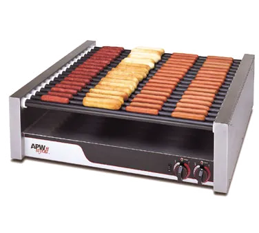 Unleash your inner chef with the APW Wyott HRS-75 Hot Dog Grill. Designed for commercial restaurant use, this hot dog grill is a must-have tool for any food establishment. With its X*PERT HotRod design and Tru-Turn rollers, this grill ensures even cooking and perfectly grilled hot dogs every time. The infinite controls allow for precise temperature adjustments, giving you full control over the cooking process. The removable grease pan makes cleaning a breeze, while the stainless steel exterior and coated steel bottom ensure durability and longevity. Certified by UL, CSA, NSF, and CE, this hot dog grill meets the highest safety and quality standards. Whether you're running a food truck, concession stand, or restaurant, the APW Wyott HRS-75 Hot Dog Grill is the perfect addition to your kitchen. Get ready to serve up delicious hot dogs that will keep your customers coming back for more.