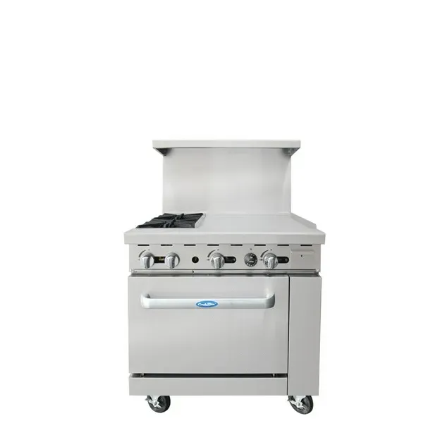 Ignite culinary passion with the Atosa USA AGR-2B24GR Range. This commercial-grade range is designed to meet the demands of a busy restaurant kitchen. With its natural gas power source, it delivers a total of 136,000 BTUs, ensuring fast and efficient cooking. The range features two 32,000 BTU open burners with standing pilots, allowing for precise temperature control. On the right side, there is a 24-inch wide, 3/4-inch thick polished steel griddle, perfect for cooking up delicious breakfast items or searing meats to perfection. The 26-1/2-inch wide oven includes an oven pilot with safety shut off and two adjustable chrome oven racks. Made with stainless steel construction, this range is built to withstand the rigors of a commercial kitchen. It also comes with casters for easy mobility and a drip tray for easy cleaning. Trust Atosa USA for reliable and high-quality restaurant equipment.