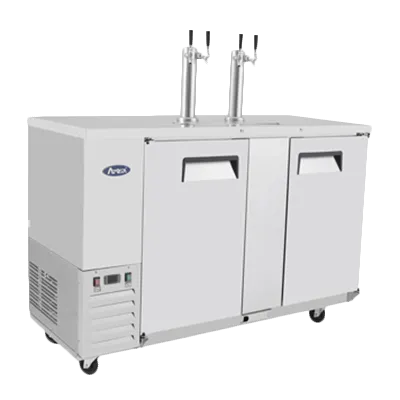 Fuel your restaurant's success with the Atosa USA, MKC58GR Draft Beer Cooler. This top-of-the-line cooler is designed to meet the needs of any commercial restaurant. With its spacious 17.3 cu. ft. capacity, it can hold up to two 1/2 barrel kegs, ensuring that you always have a variety of beers on tap for your customers to enjoy. The dual faucet towers allow for easy pouring, while the locking solid doors keep your inventory secure. The stainless steel interior and exterior not only give the cooler a sleek and professional look, but also make it easy to clean and maintain. The Dixell digital controller ensures precise temperature control, while the R290 Hydrocarbon refrigerant is environmentally friendly. With its compact size and 2" casters, this cooler is easy to move and position wherever you need it. Invest in the Atosa USA, MKC58GR Draft Beer Cooler and elevate your restaurant's beverage service to the next level.
