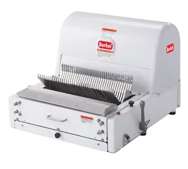 Equip your kitchen for success with the Berkel MB1/2STD Bread Slicer. This countertop slicer is designed to meet the demands of a commercial restaurant, ensuring efficiency and precision in every slice. The 1/2" slice thickness allows for consistent results, while the alloy carbon steel blades ensure durability and sharpness. The stainless steel bagging trough and removable scrap pan make cleanup a breeze, saving you valuable time and effort. With a 1-speed operation and an on/off toggle switch with a safety guard, this slicer prioritizes user safety without compromising on performance. The white polyester powder coat exterior adds a sleek and professional touch to your kitchen. Powered by a 1/3 HP motor, this slicer is reliable and efficient. Trust Berkel, a renowned vendor in the industry, to deliver a high-quality bread slicer that will elevate your restaurant's operations.