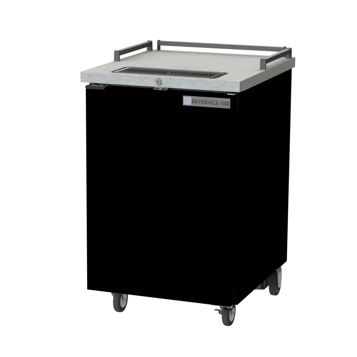 Elevate your dining experience with the Beverage Air BM23HC-B-28 Draft Beer Cooler. This portable cooler is designed to enhance your commercial restaurant's beverage service. With a capacity of 7.66 cu. ft., it can accommodate one keg, ensuring that your customers always have a refreshing draft beer option. The self-closing door with locks ensures the beer stays cold and secure, while the black exterior and stainless steel top add a sleek and professional look to your establishment. The galvanized interior and stainless steel floor make for easy cleaning and maintenance. Equipped with 4" casters, this cooler is easy to move around your restaurant as needed. The BM23HC-B-28 uses R290 Hydrocarbon refrigerant, which is not only environmentally friendly but also ensures efficient cooling. Trust in the quality and reliability of Beverage Air, a trusted name in the industry. Elevate your beverage service with the Beverage Air BM23HC-B-28 Draft Beer Cooler.