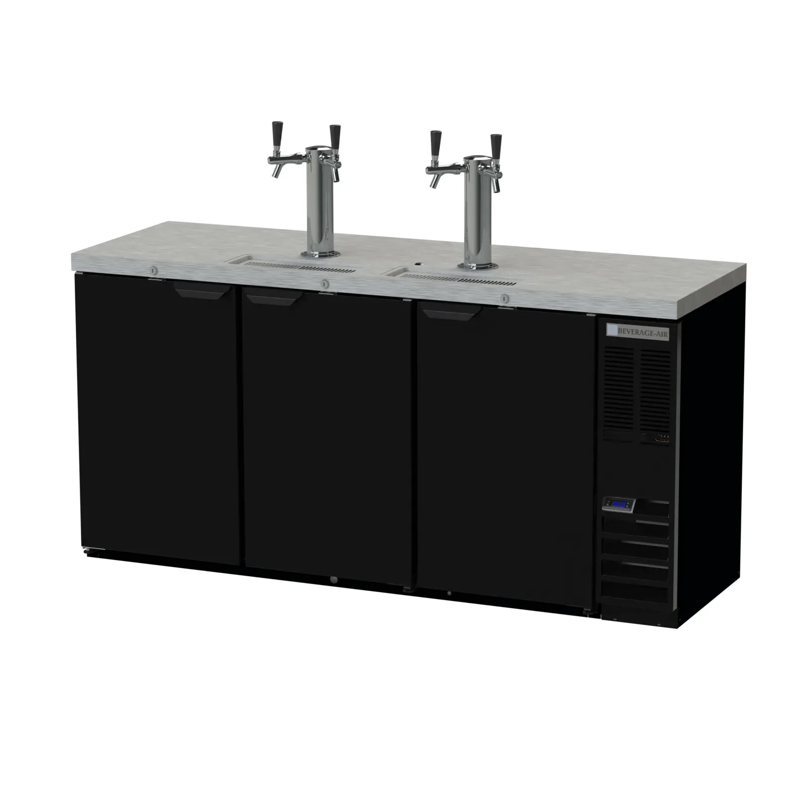 Equip your kitchen for success with the Beverage Air, DD72HC-1-B Draft Beer Cooler. This top-of-the-line cooler is designed to meet the needs of commercial restaurants, ensuring that your draft beer is always served at the perfect temperature. With its spacious 72" width and 19.95 cu. ft. capacity, this cooler can hold up to three kegs, allowing you to offer a wide selection of beers to your customers. The three doors come with door locks for added security, and the black exterior gives it a sleek and professional look. The stainless steel top and drip tray are not only durable but also easy to clean. Inside, the galvanized interior with reinforced stainless steel floor, walls, and ceiling ensures long-lasting performance. The self-contained refrigeration system uses R290 Hydrocarbon refrigerant, making it energy-efficient and environmentally friendly. With its 1/3 HP motor, this cooler is powerful enough to keep your beer cold even during peak hours. Trust Beverage Air, a reputable vendor known for their high-quality products, and invest in the DD72HC-1-B Draft Beer Cooler for your restaurant today.