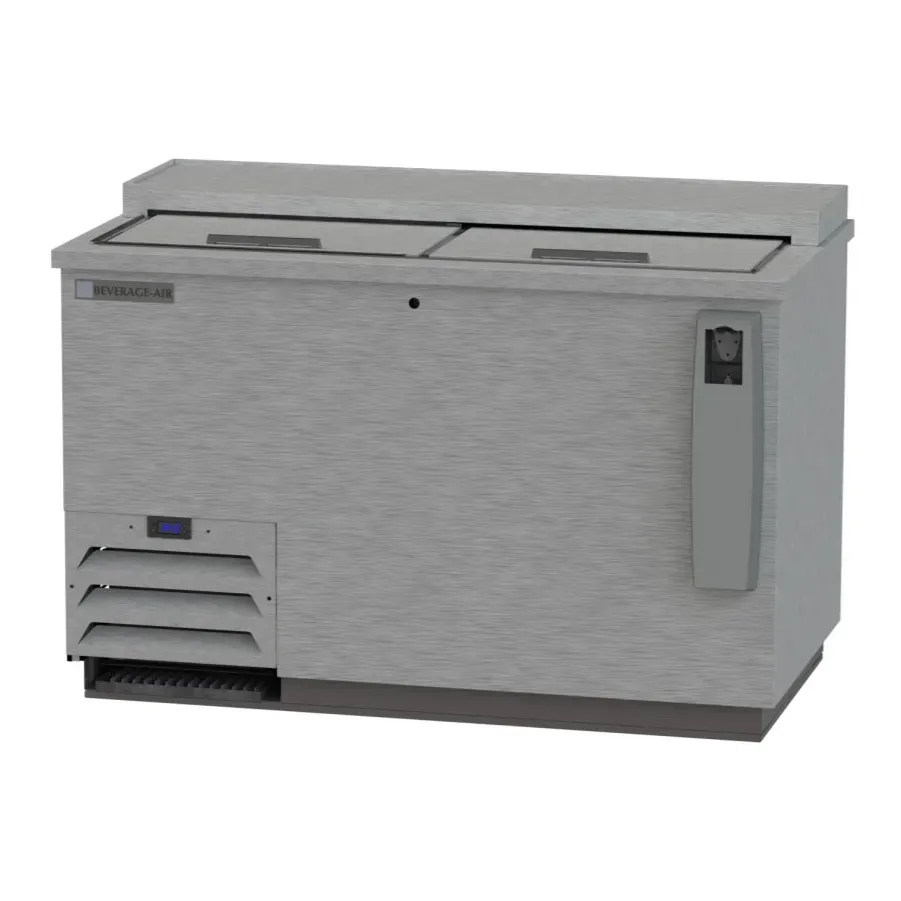 Take your kitchen to the next level with the Beverage Air DW49HC-S-29 Bottle Cooler. This frosty brew cooler is designed to meet the needs of commercial restaurants, offering a spacious 13.7 cu. ft. capacity to hold up to 17-1/2 cases of 12 oz. bottles or 23-3/4 cases of 12 oz. cans. The deep well design and adjustable dividers allow for easy organization and access to your beverages. With its stainless steel exterior and galvanized interior, this bottle cooler is not only durable but also easy to clean. The sliding lids, bottle cap opener, and cap catcher add convenience to your beverage service. Plus, the self-contained refrigeration system ensures that your drinks are kept below 32 F for optimal freshness. Upgrade your restaurant's beverage storage with the Beverage Air DW49HC-S-29 Bottle Cooler. MADE IN USA.