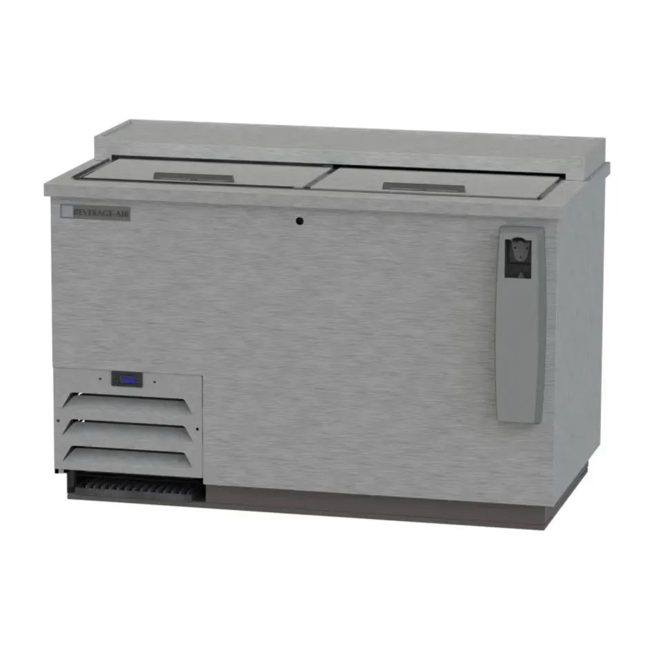 Invest in superior quality with the Beverage Air DW49HC-S Bottle Cooler. This flat top cooler is designed to meet the needs of commercial restaurants, offering a spacious 13.7 cu. ft. capacity. With two sliding lids and three adjustable epoxy coated wire dividers, you can easily organize and access your beverages. The deep well design allows for maximum storage, accommodating up to 17-1/2 cases of 12 oz. bottles or 23-3/4 cases of 12 oz. cans. The galvanized interior and stainless steel top and exterior ensure durability and easy cleaning. The self-contained refrigeration system, powered by a 1/4 HP compressor, keeps your drinks perfectly chilled. Plus, with the R290 Hydrocarbon refrigerant, this cooler is environmentally friendly. Trust in the quality and reliability of Beverage Air, a brand known for its exceptional products. Upgrade your restaurant's beverage storage with the Beverage Air DW49HC-S Bottle Cooler.