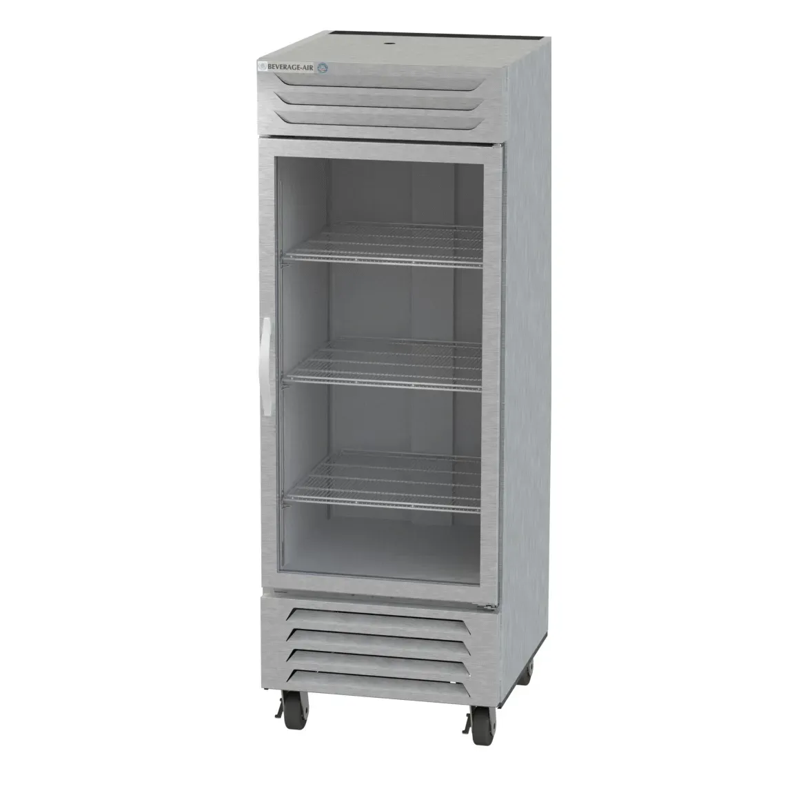 Create culinary magic with the Beverage Air FB27HC-1G Freezer, Reach-In. This top-of-the-line freezer is designed to meet the demands of a busy commercial restaurant. With its spacious 26.57 cu. ft. capacity, you'll have plenty of room to store all your frozen ingredients and prepared dishes. The electronic control allows for precise temperature adjustments, ensuring that your food stays fresh and frozen at the optimal temperature. The hinged glass door provides easy access to your items, while the three adjustable wire shelves allow for flexible storage options. The LED interior lighting illuminates the contents, making it easy to find what you need. Made in the USA, this freezer is built to last with its stainless steel front and gray coated steel sides. The bottom-mounted self-contained refrigeration system is not only efficient but also helps save valuable kitchen space. Trust Beverage Air for all your commercial freezer needs.