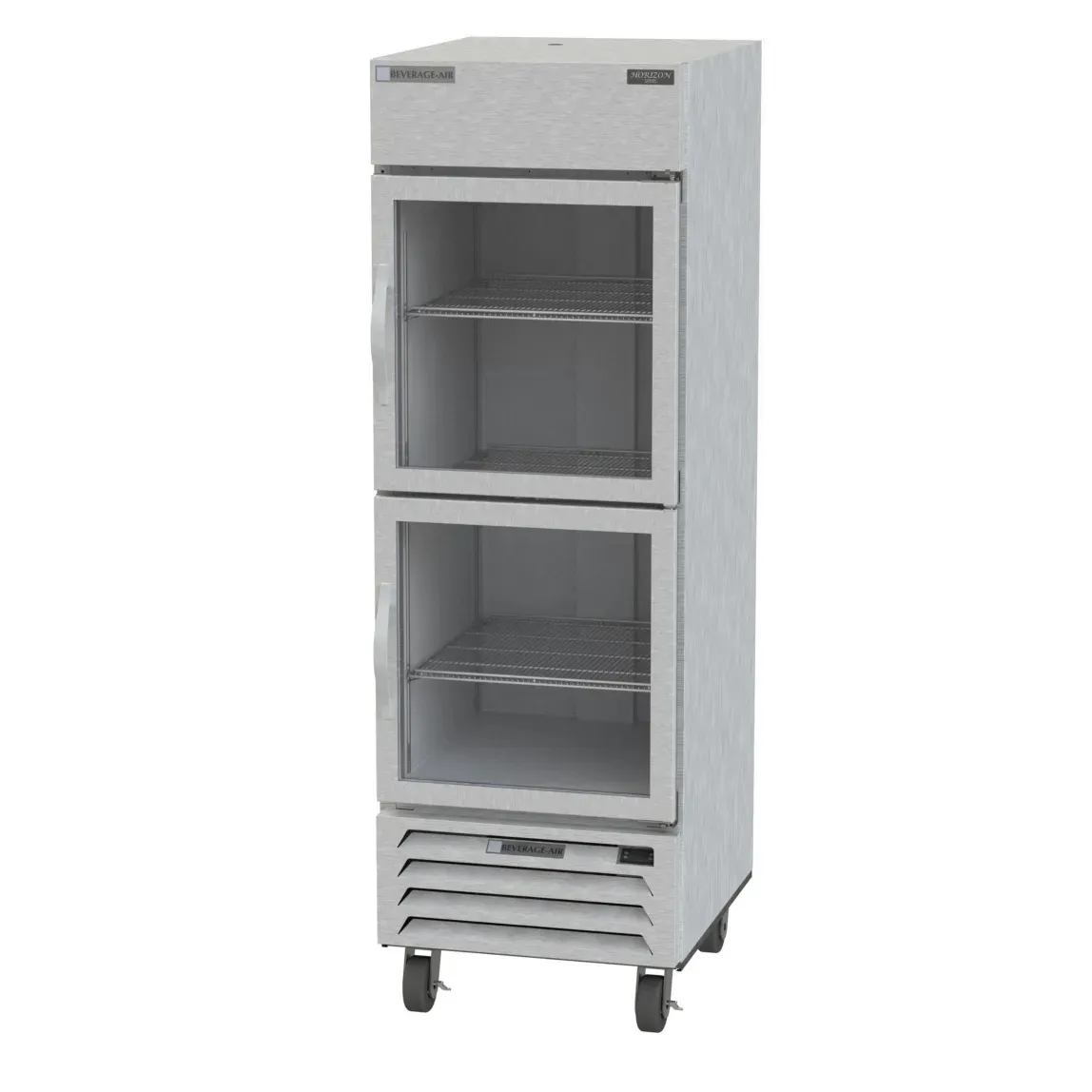 Kitchen innovation at its best, the Beverage Air HBF23HC-1-HG Freezer is a must-have for any commercial restaurant. With its Horizon Series design, this reach-in freezer offers a spacious 22.5 cu. ft. capacity, providing ample storage space for all your frozen goods. The two right-hand hinged glass half doors allow for easy visibility and access to your inventory, while the three adjustable shelves offer flexibility in organizing your products. The electronic control and digital display make it simple to monitor and adjust the temperature, ensuring optimal food preservation. The LED interior lighting illuminates the contents, making it easy to locate items even in low-light conditions. With expansion valve technology and automatic defrost, this freezer guarantees efficient performance and hassle-free maintenance. The bottom-mounted self-contained refrigeration system ensures easy access for servicing and cleaning. Made in the USA with a stainless steel interior and exterior, this freezer is built to withstand the demands of a busy commercial kitchen. Trust Beverage Air for reliable, high-quality refrigeration solutions.
