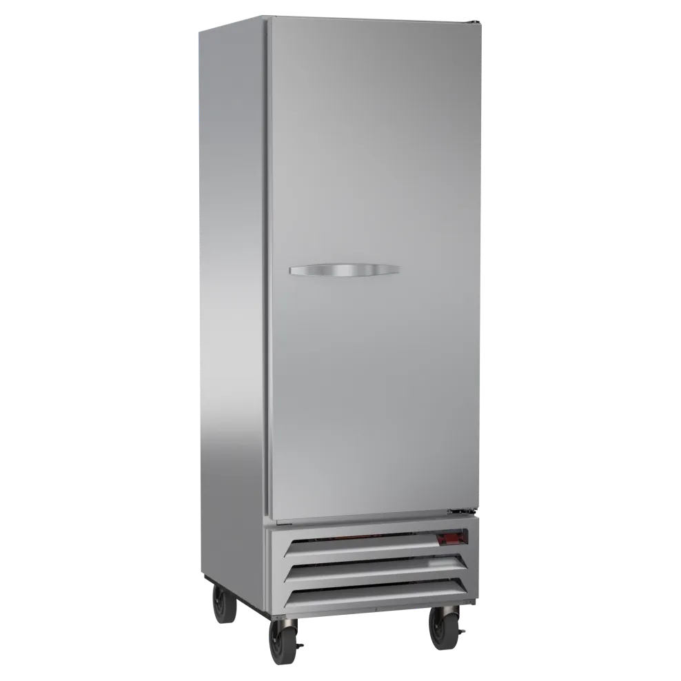 Culinary artistry redefined with the Beverage Air HBR12HC-1 Reach-In Refrigerator. This Horizon Series refrigerator is designed to meet the demands of a commercial restaurant, offering a spacious 12.06 cu. ft. capacity to store all your perishable ingredients. The right-hand solid hinged door provides easy access to the four adjustable shelves, allowing you to organize your items efficiently. With electronic control and a digital display, you can easily monitor and adjust the temperature to ensure optimal freshness. The LED interior lighting illuminates the stainless steel interior, making it easy to locate items even in low-light conditions. The exterior features a stainless steel front, sides, and grille, giving the refrigerator a sleek and professional look. The bottom-mounted self-contained refrigeration system ensures efficient cooling while the R290 Hydrocarbon refrigerant is environmentally friendly. Made in the USA and certified by cULus and UL-Sanitation, this Beverage Air Reach-In Refrigerator is a reliable and durable choice for any commercial kitchen.